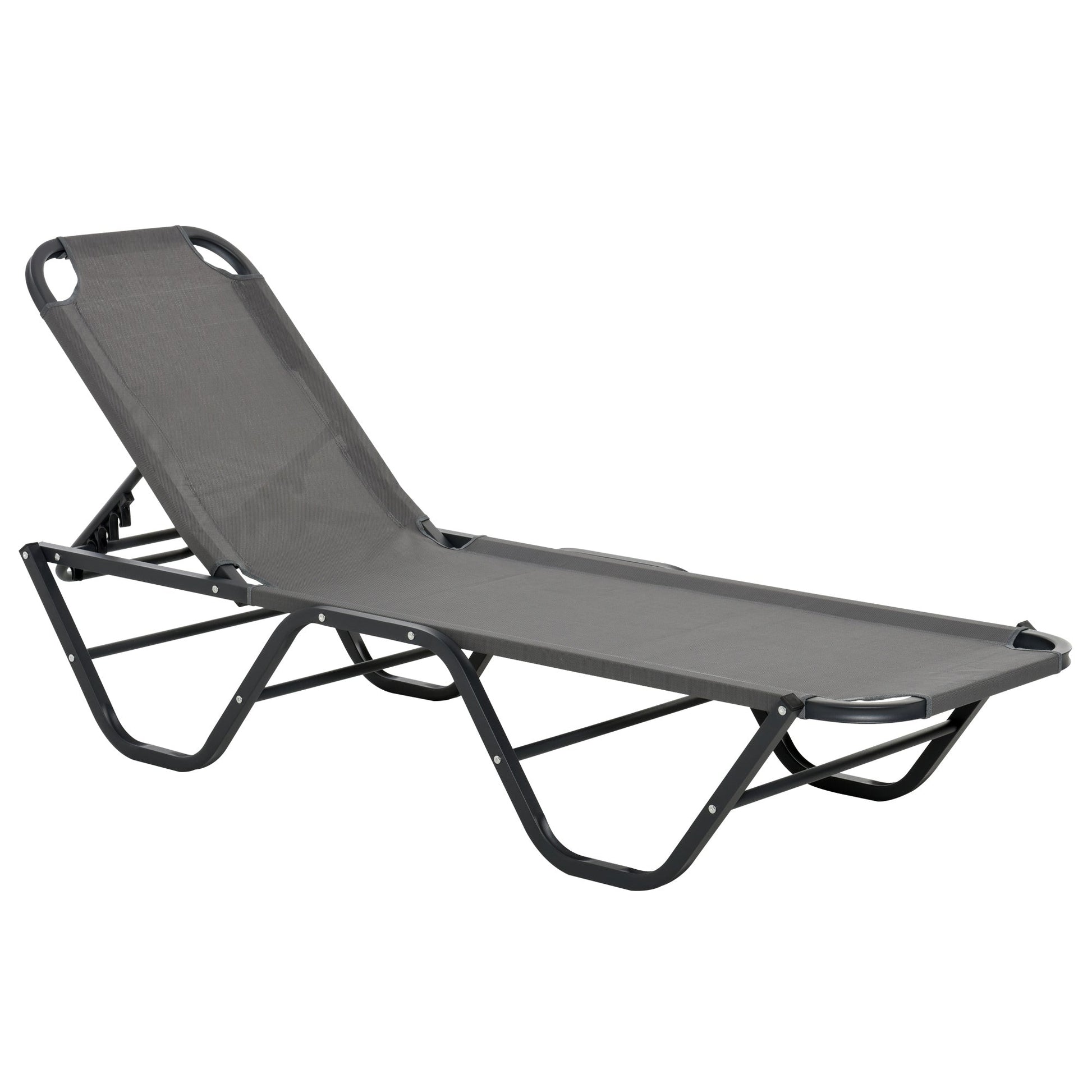 Outsunny Sun Lounger Relaxed Recliner with 5-Position Adjustable Backrest Aluminium Frame for Pool, Sun Bathing, Grey