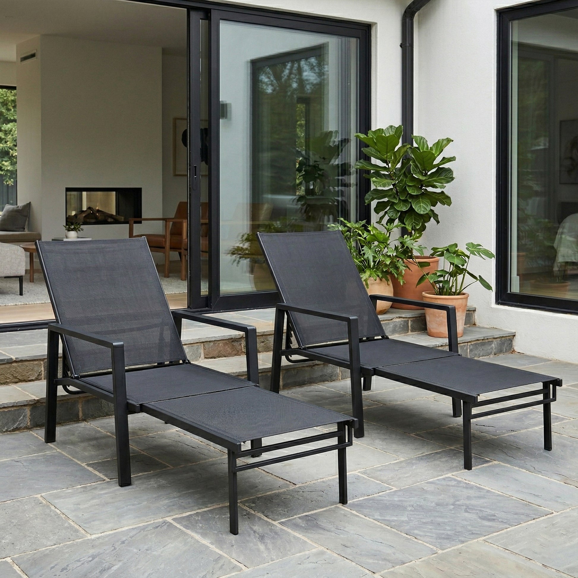 Outsunny Sun Loungers Set of 2 Retractable Footrest 5-Position Adjustable Steel Frame for Beach, Porch, Patio, Camping, Black