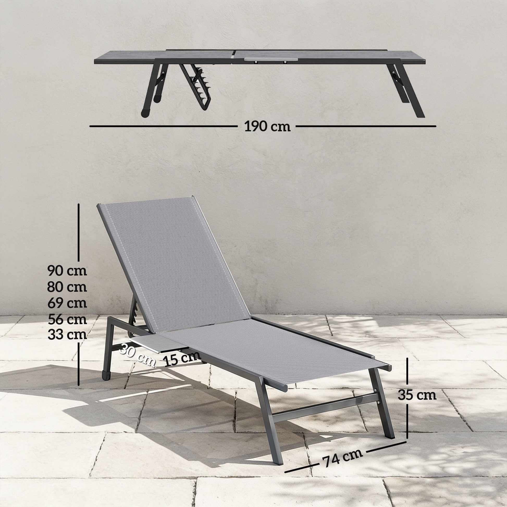 Picture a serene afternoon by the water, but the moment is spoiled by mismatched furniture and nowhere to place your drink. This Outsunny sun loungers for garden ends the frustration. It includes two coordinated loungers ensuring a harmonious look. Each chair features five backrest positions for personalized comfort and an integrated side tray table. Unwind completely with everything you need right at your fingertips with this sun lounger set.