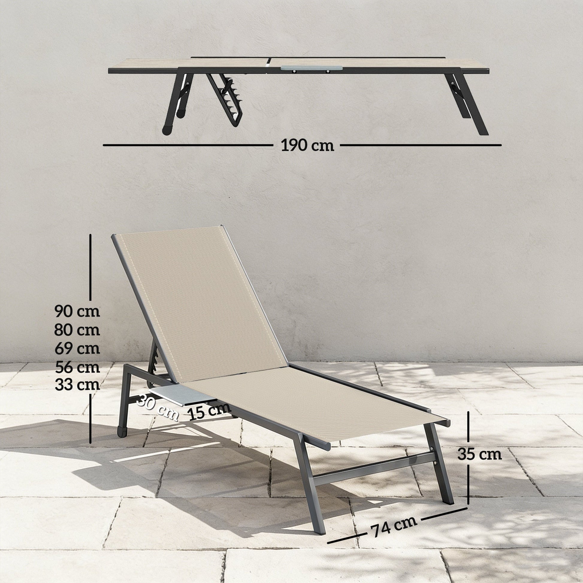 Picture a serene afternoon by the water, but the moment is spoiled by mismatched furniture and nowhere to place your drink. This Outsunny sun loungers for garden ends the frustration. It includes two coordinated loungers ensuring a harmonious look. Each chair features five backrest positions for personalized comfort and an integrated side tray table. Unwind completely with everything you need right at your fingertips with this sun lounger set.