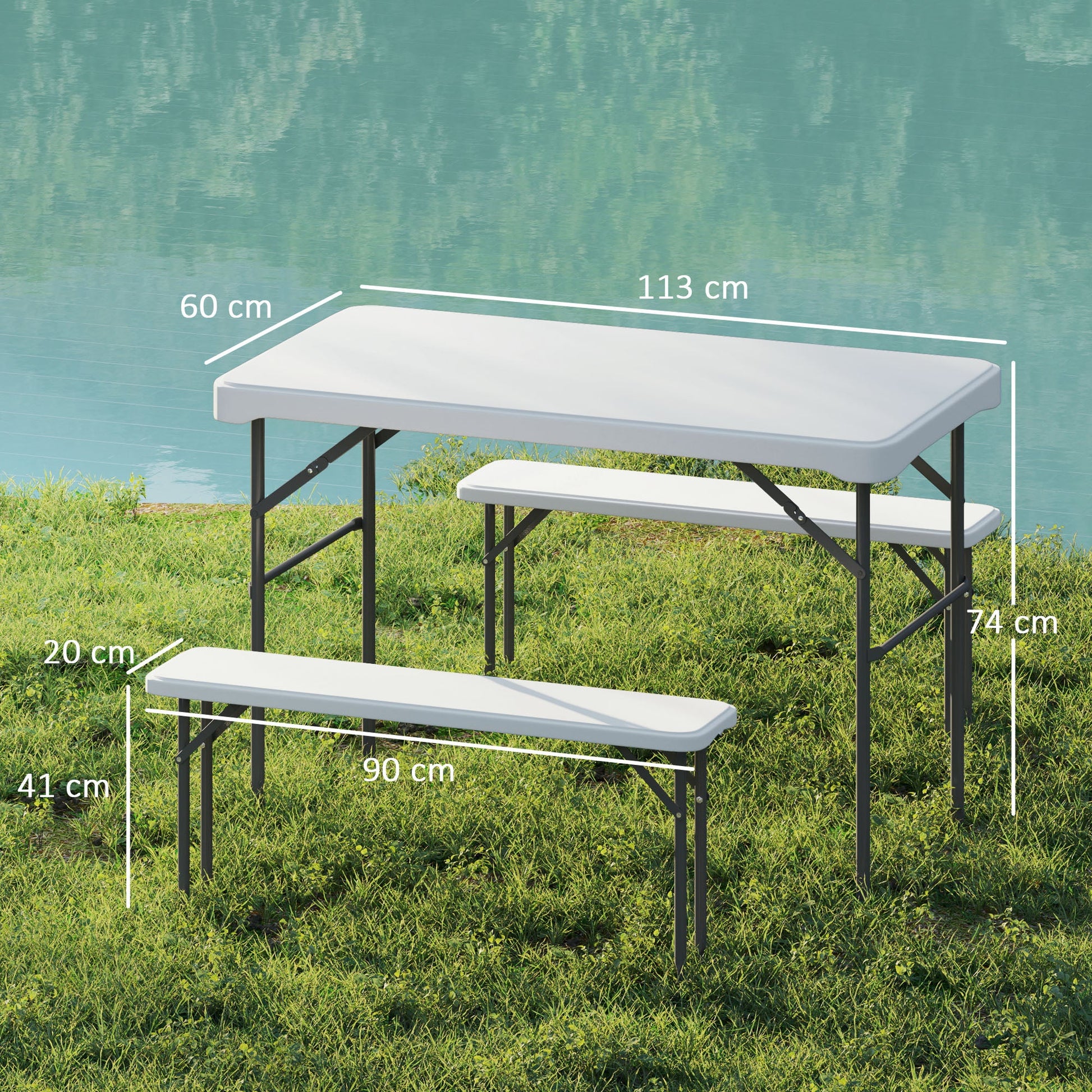 Outsunny Three-Piece Folding Picnic Table and Bench Set - White