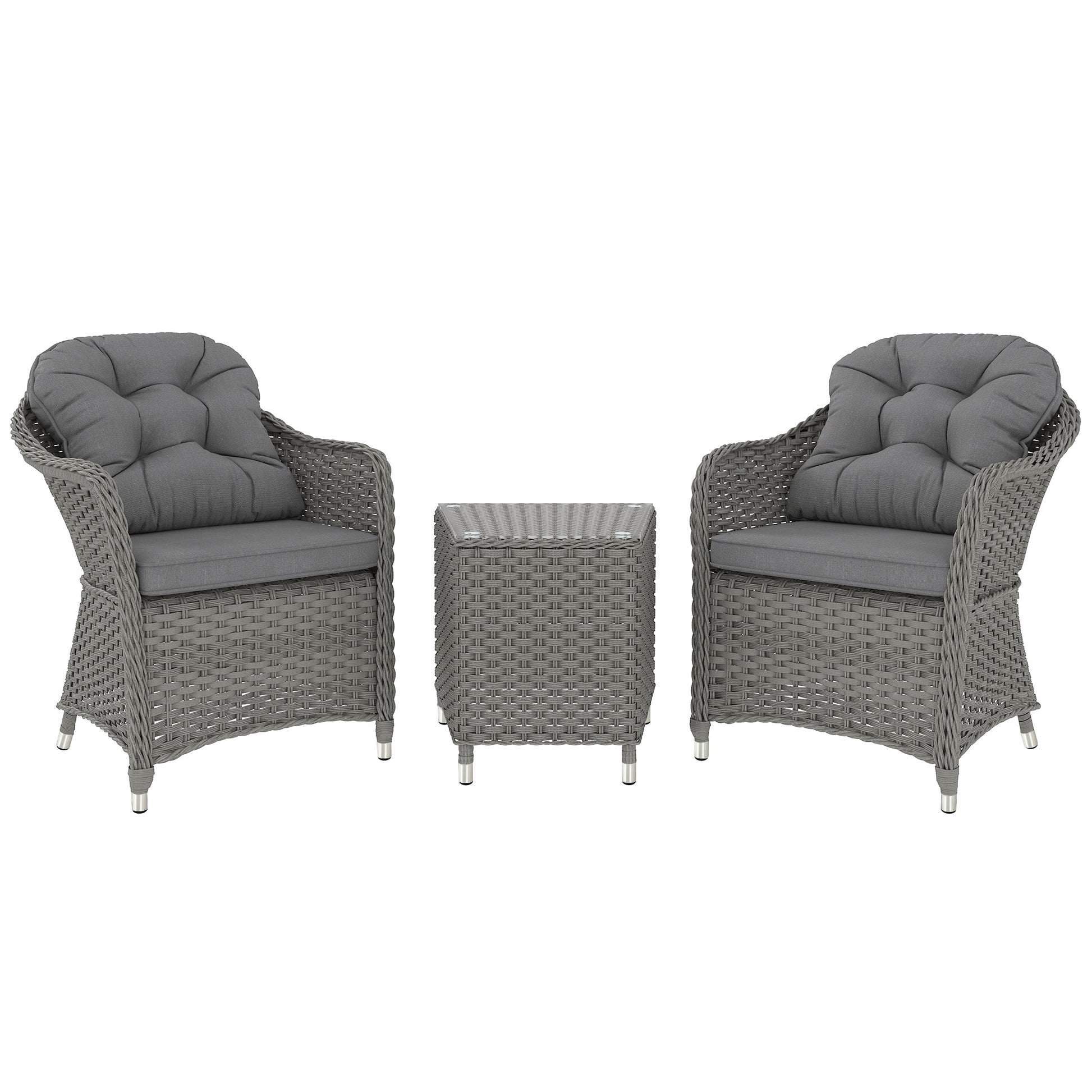 Outsunny Three-Piece Super Padded Rattan Set - Light Grey