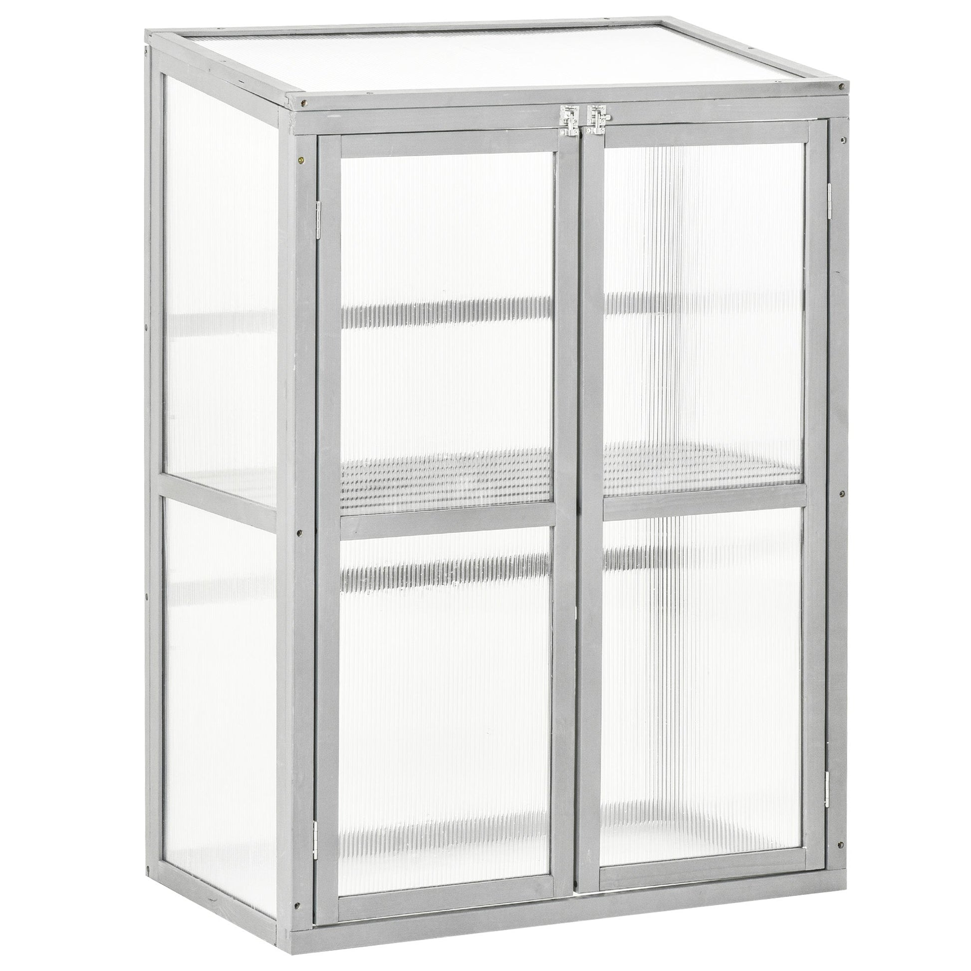 Outsunny Wooden Cold Frame Greenhouse Polycarbonate Garden Grow House for Flower Vegetable Plants with Adjustable Shelf, Double Doors, 76 x 47 x 110cm, Light Grey