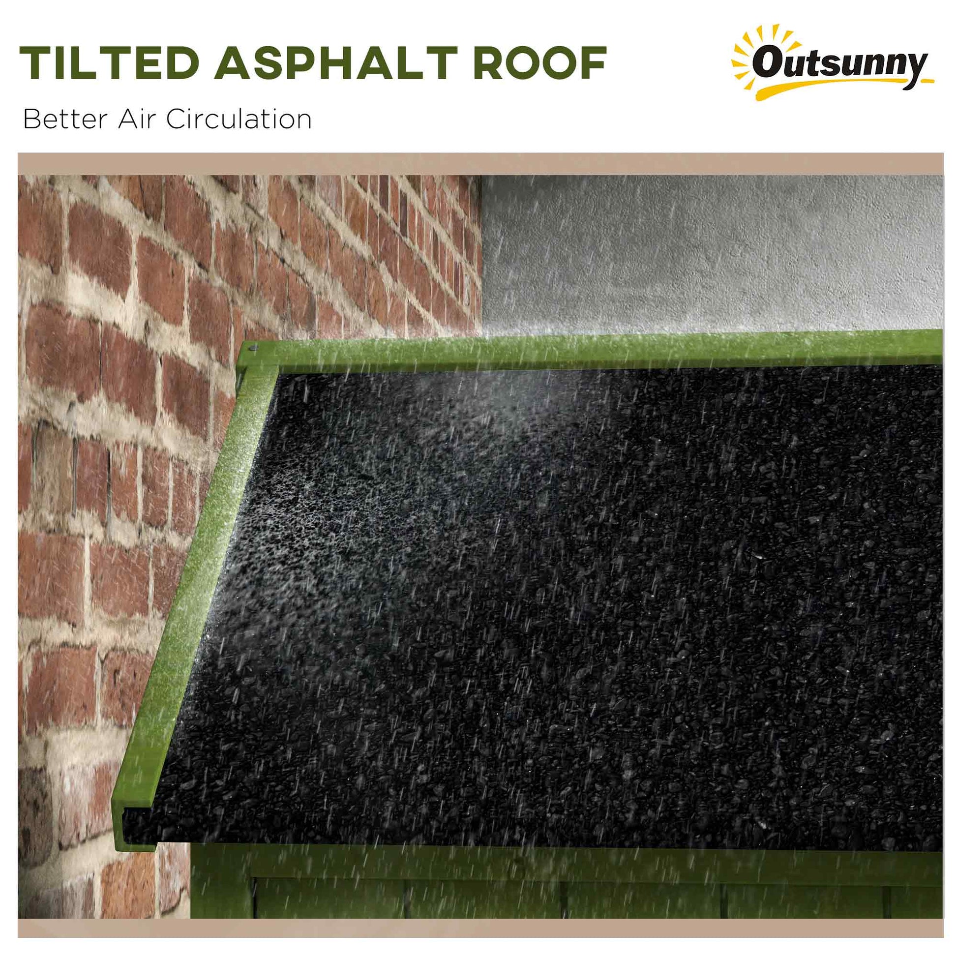 - The roof is covered with asphalt for added outdoor protection