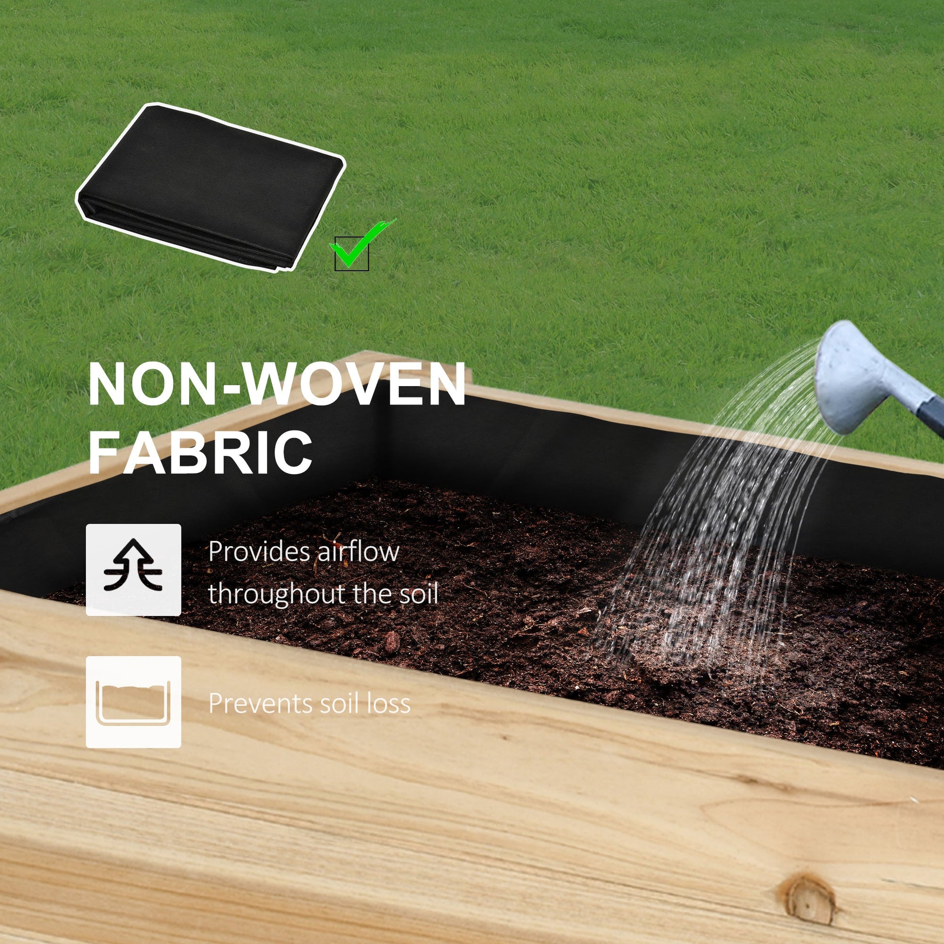 - Non-woven fabric lining in planting box, keeps soil together and allows plants to breathe