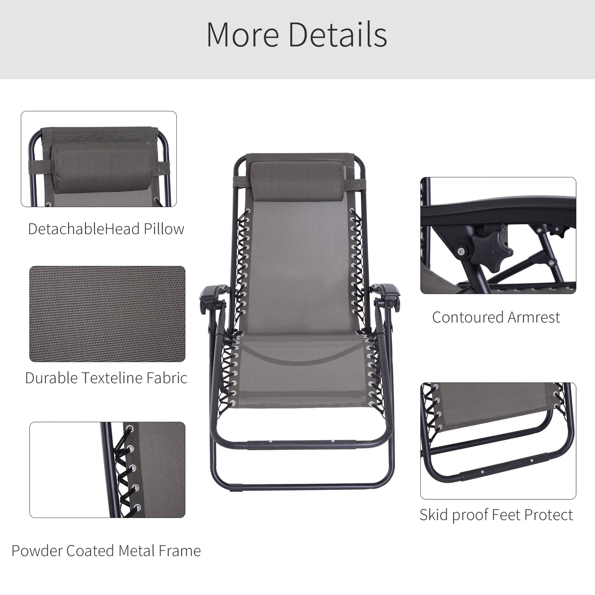 Outsunny Zero Gravity Chair Metal Frame Texteline Armchair Outdoor Folding and Reclining Sun Lounger with Head Pillow for Patio Decking Gardens Camping, Grey