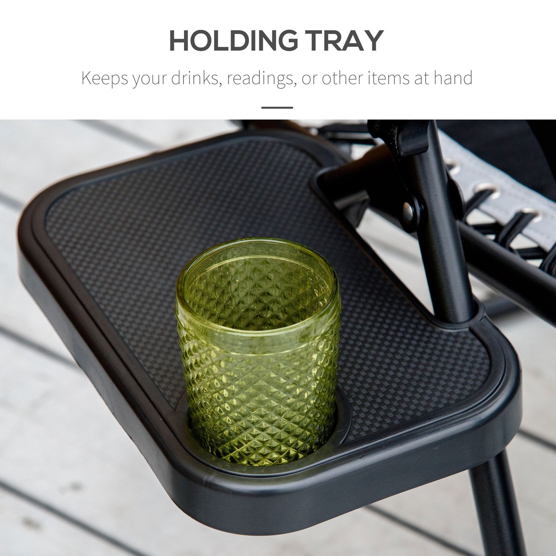 Outsunny Zero Gravity Lounger Chair, Folding Reclining Patio Chair with Shade Cover, Padded Seat, Cup Holder, Soft Cushion and Headrest for Poolside, Camping, Grey