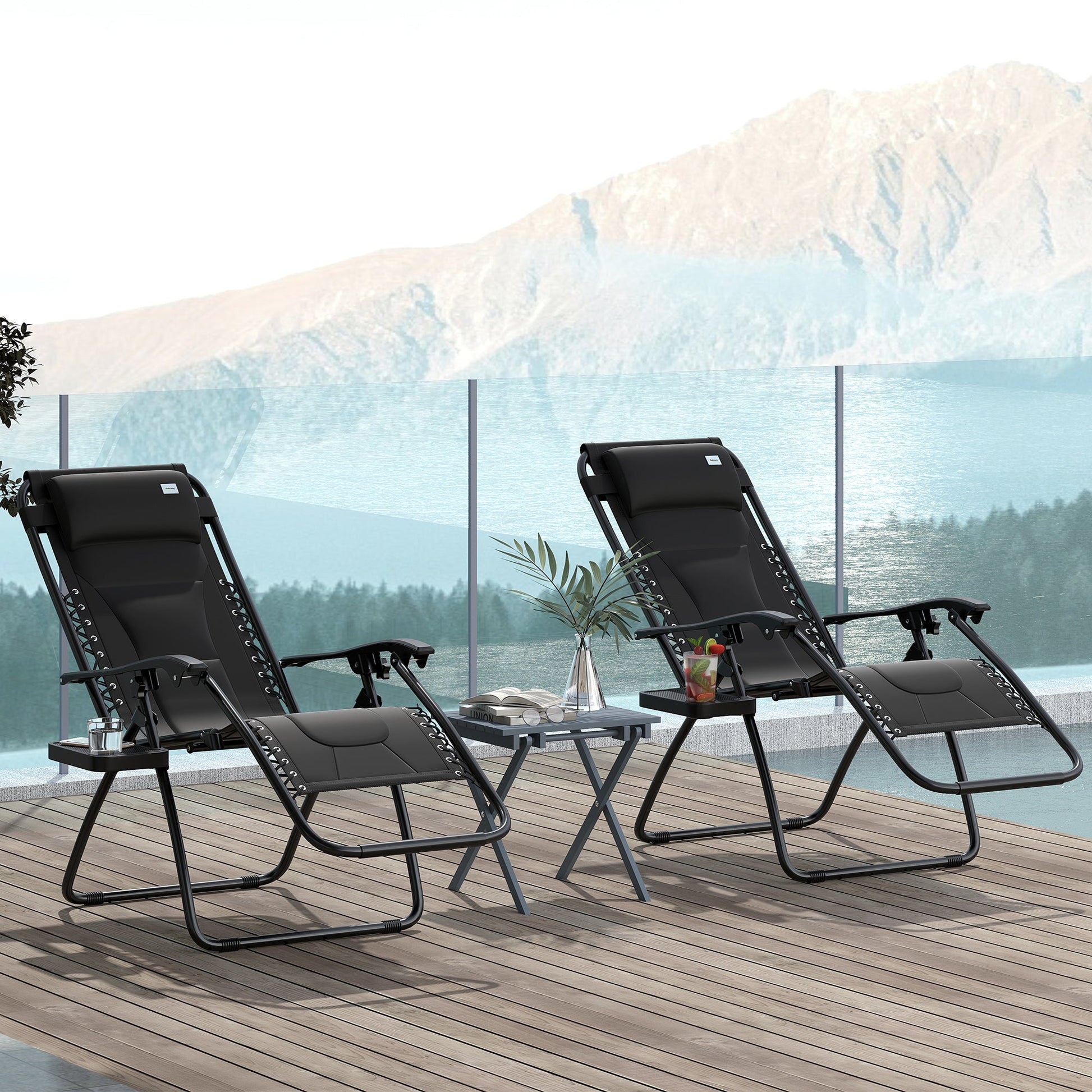 Outsunny Zero Gravity Lounger Chair Set of 2, Folding Reclining Patio Chair with Padded Seat, Cup Holder, Soft Cushion and Headrest for Poolside, Camping, Black