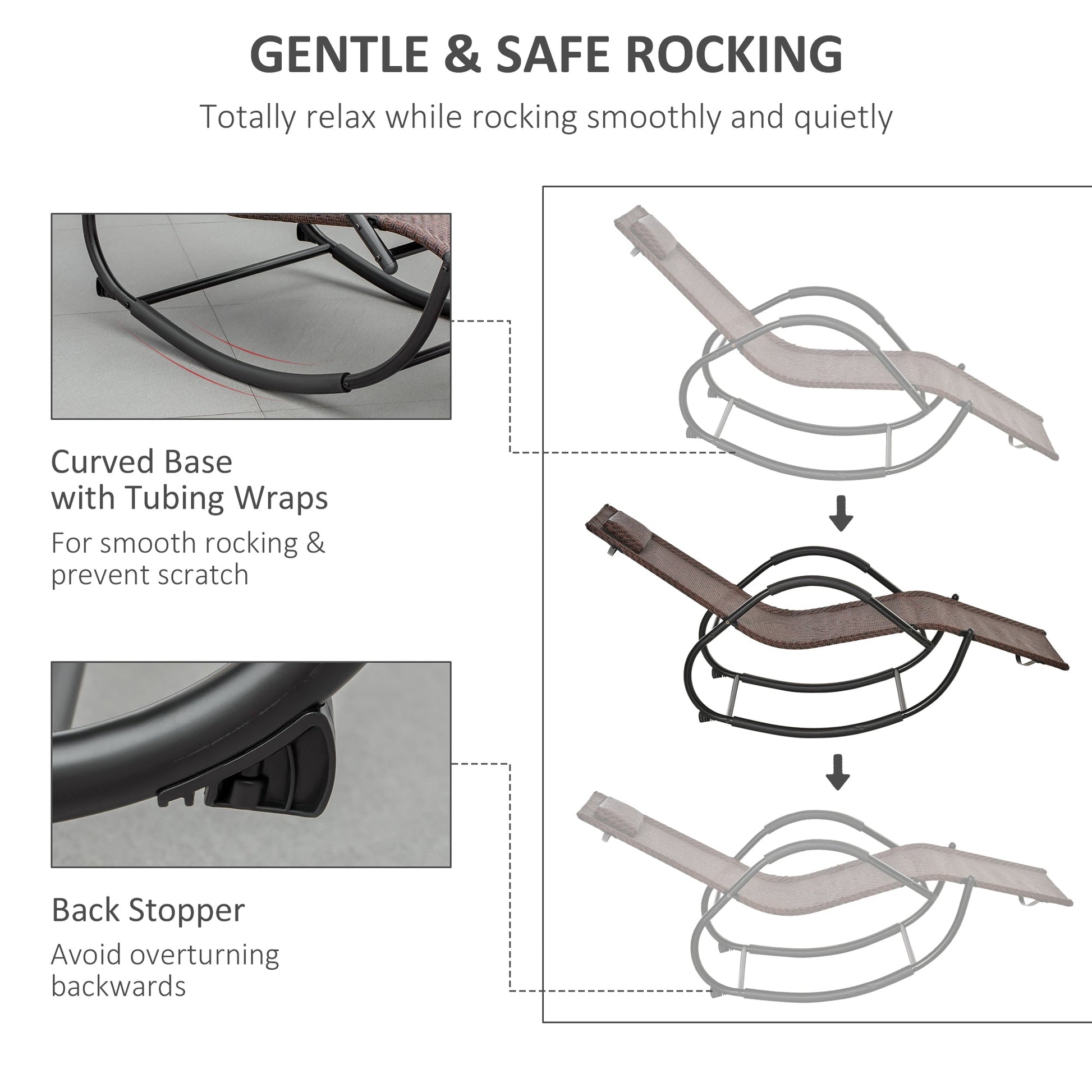 Outsunny Zero Gravity Rocking Lounge Chair Rattan Effect Patio Rocking Chair w/ Removable Pillow Recliner Seat Breathable Texteline - Brown