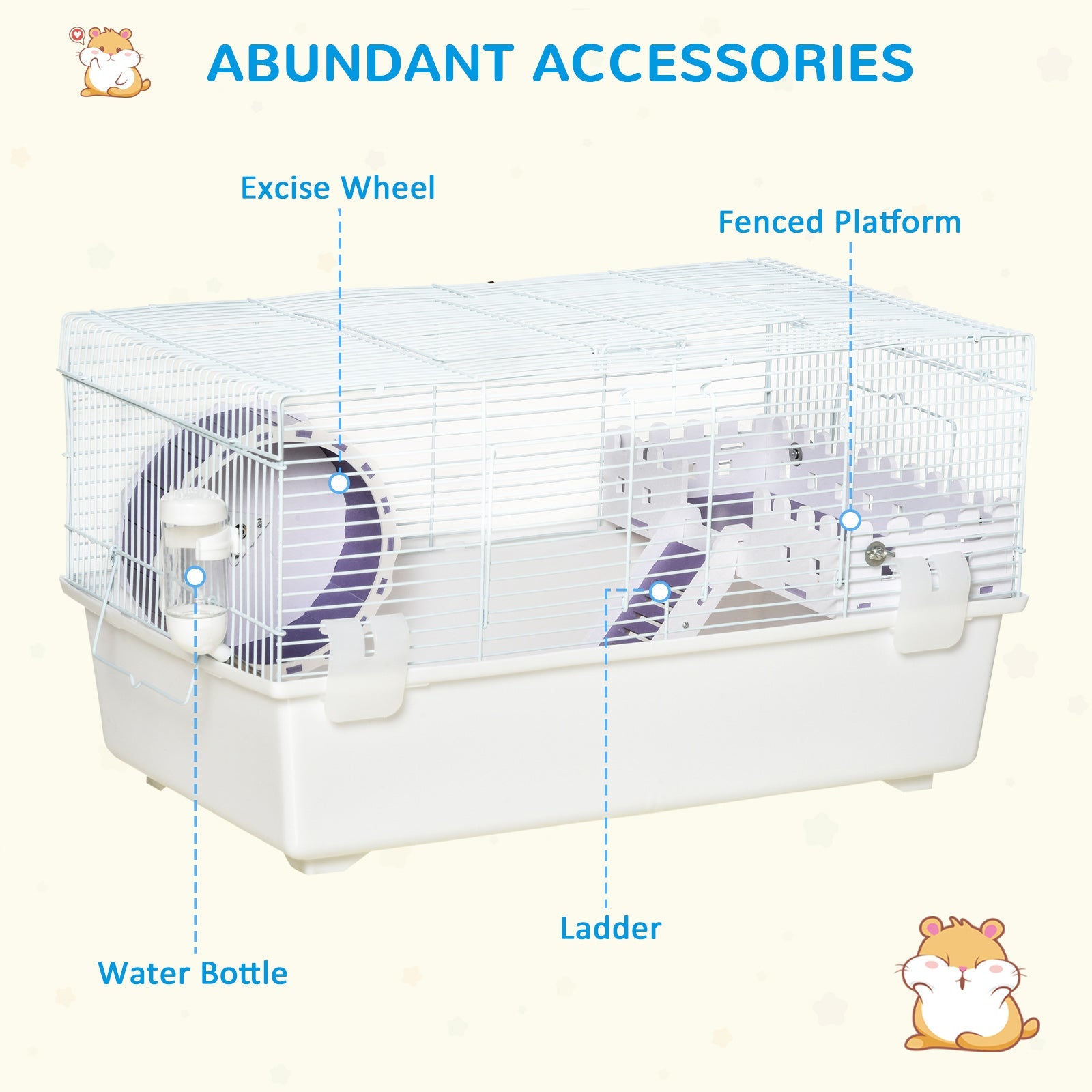 PawHut 2 Tier Hamster Cage, Gerbil Cage with Exercise Wheel, Water Bottle, Ladder, White