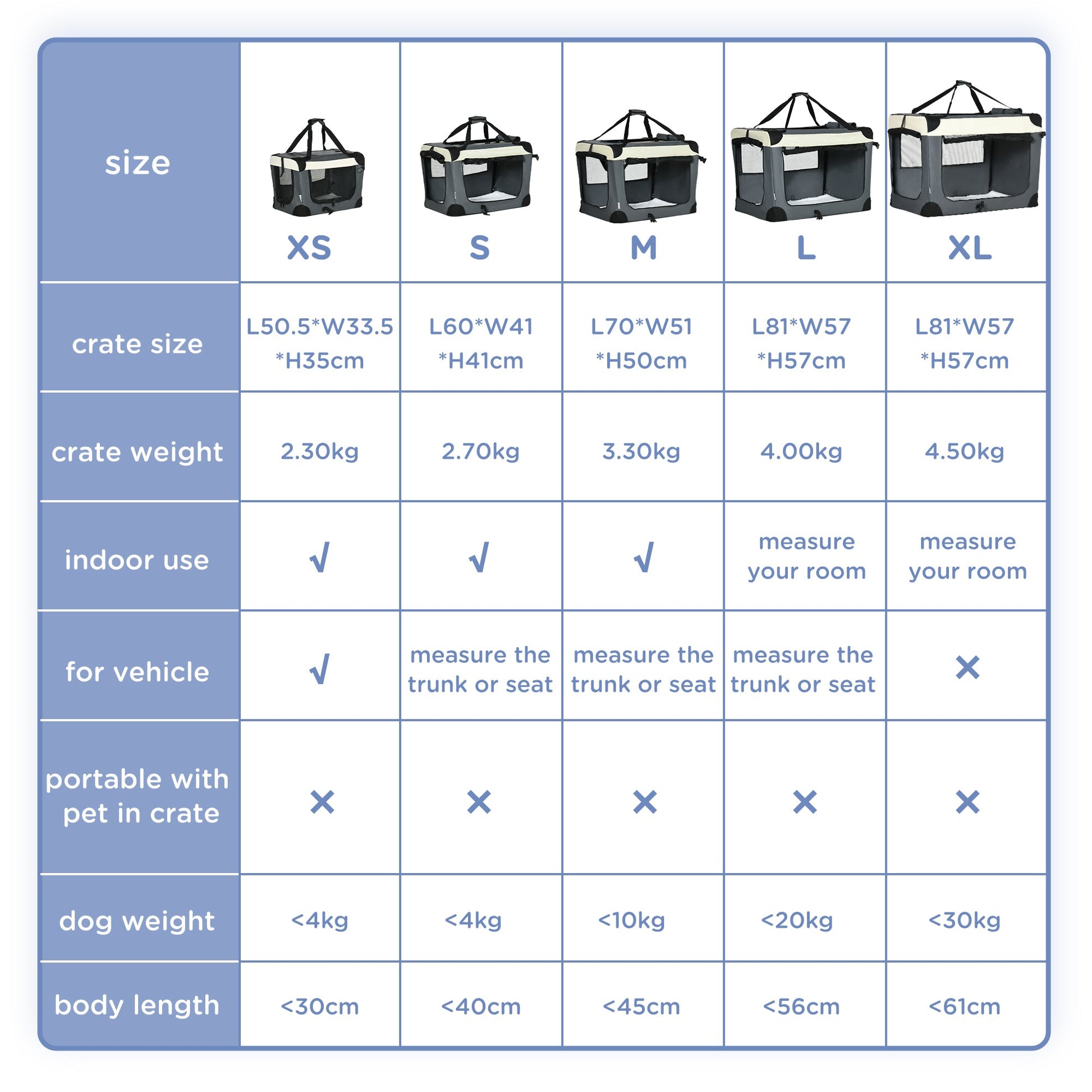 Struggle to travel with pets? With this PawHut fabric dog crate, you'll struggle no more. Its adjustable strap goes over your shoulder, so it's much easier carrying cats or small dogs. Three doors for easy access – they'll enter a spacious area, where they'll relax on a soft cushion, whilst the air flows through the mesh window to keep them cool. It's foldable and comes with a bag, saving space when stored away. Not just for travelling, it can be used at home – a place for pets to lounge.