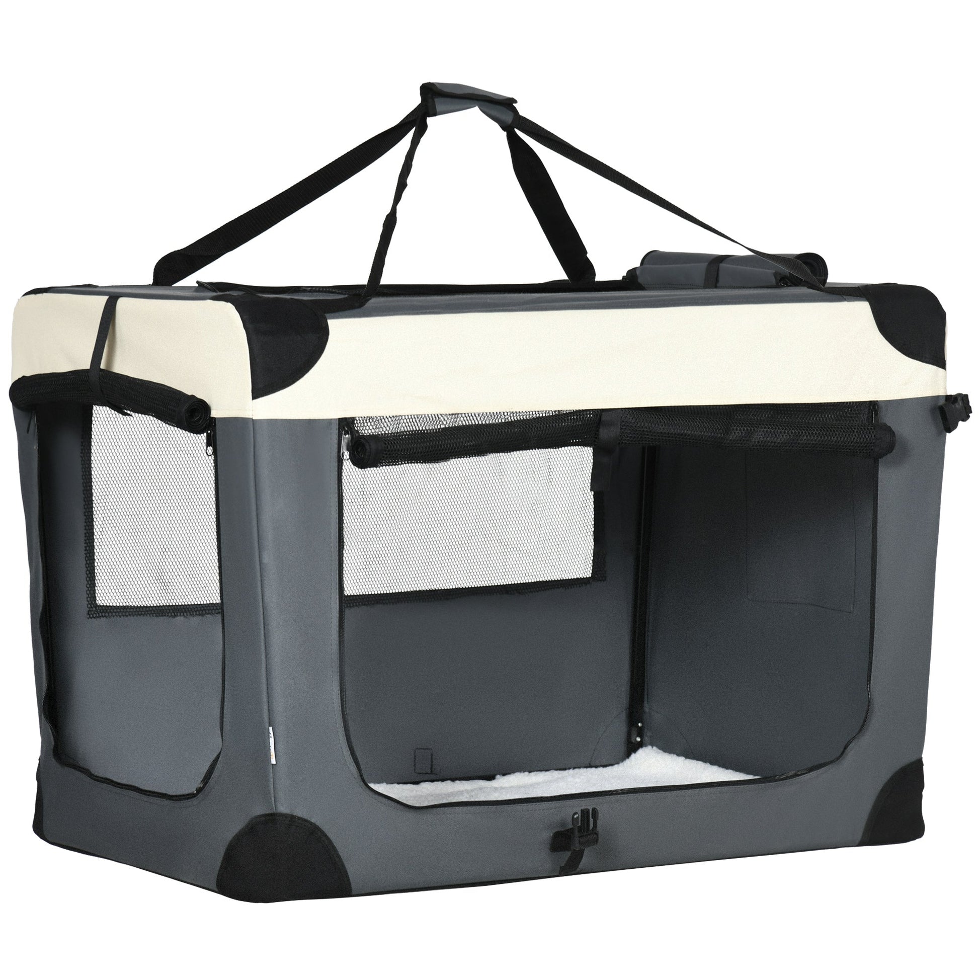 PawHut 91cm Foldable Pet Carrier, with Cushion, for Large Dogs and Cats - Grey