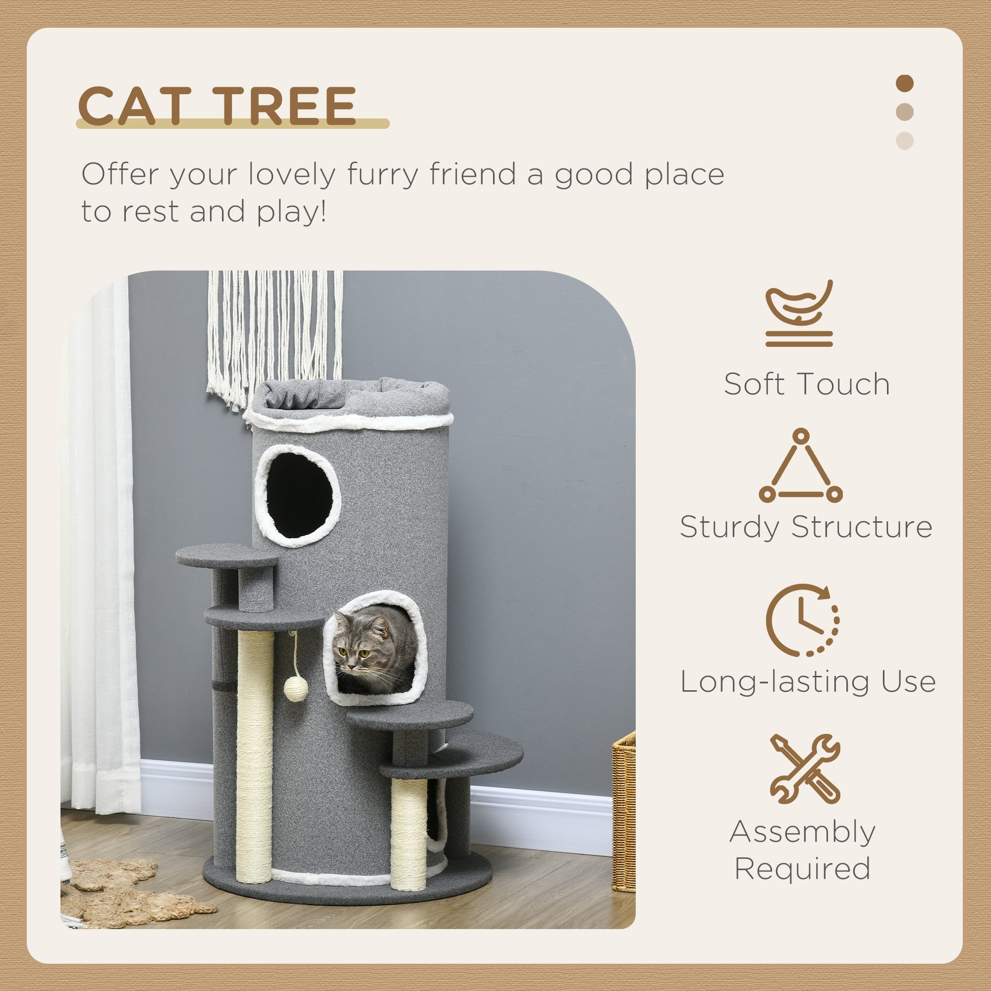 - Multiple levels fulfil cats' instinct to climb and explore