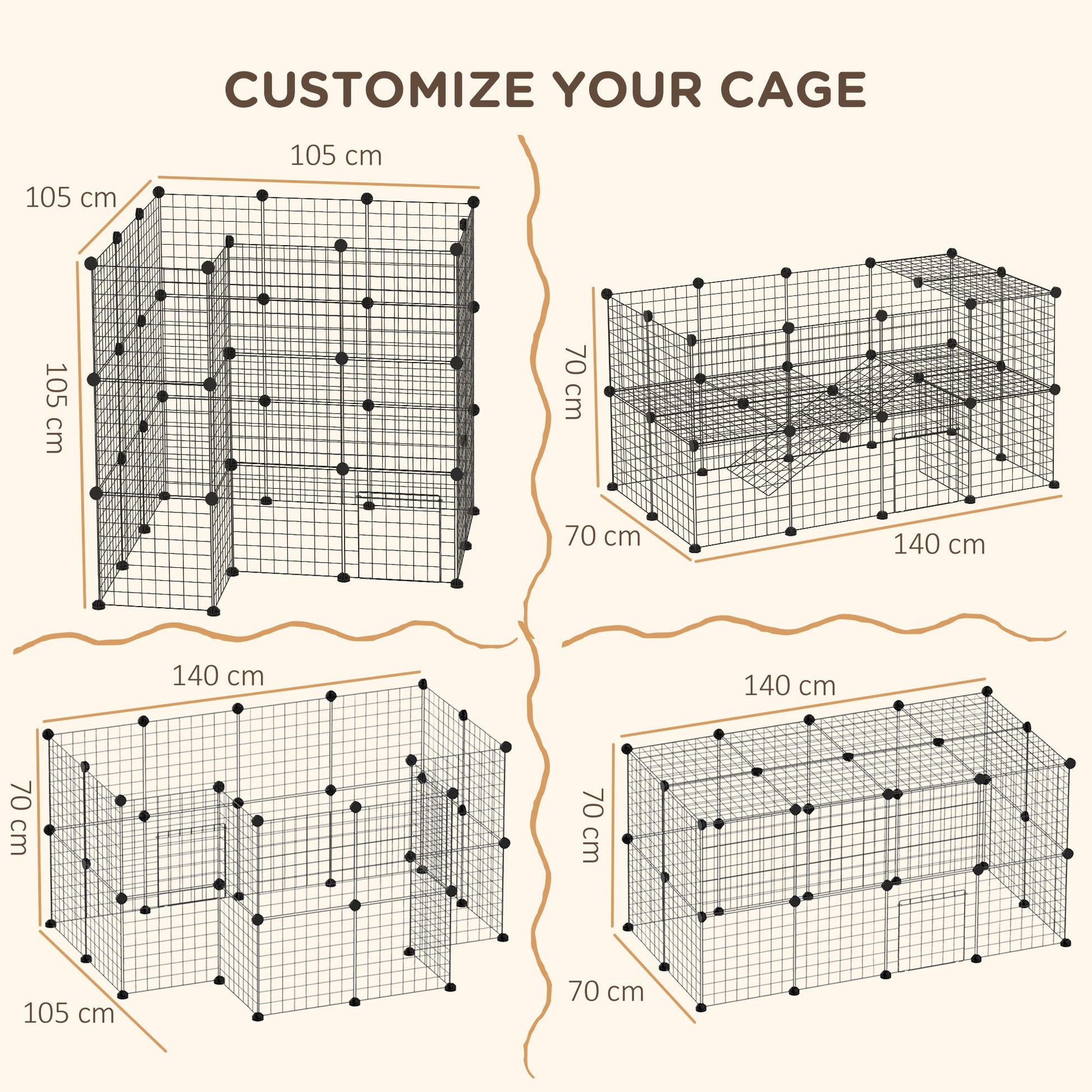Provide a safe and flexible haven for your beloved small pets with the PawHut pet playpen. Designed with 36 sturdy metal panels, this versatile enclosure allows you to customize the shape and size to fit any space, ensuring your pets have ample room to explore while staying secure. Perfect for indoor or outdoor use, it includes all necessary connectors and cable ties for easy assembly. The open-air design ensures your pets enjoy fresh air and visibility, offering a secure environment.