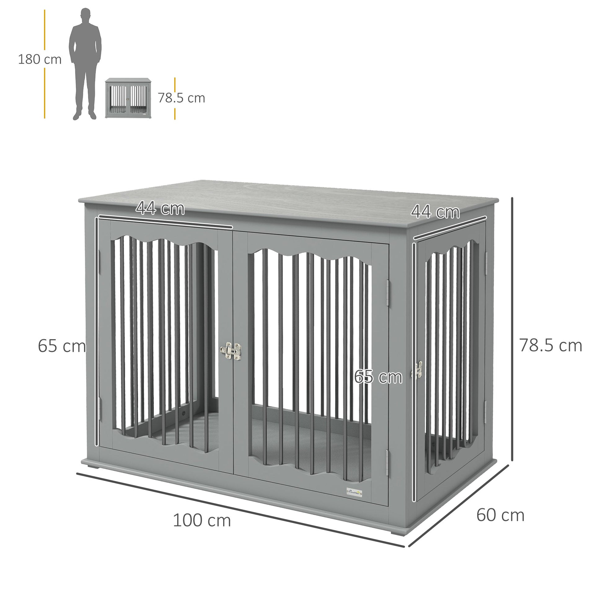 PawHut Dog Crate, End Table, with Three Doors, Locks, Latches for Large Dogs, Indoor Use - Grey