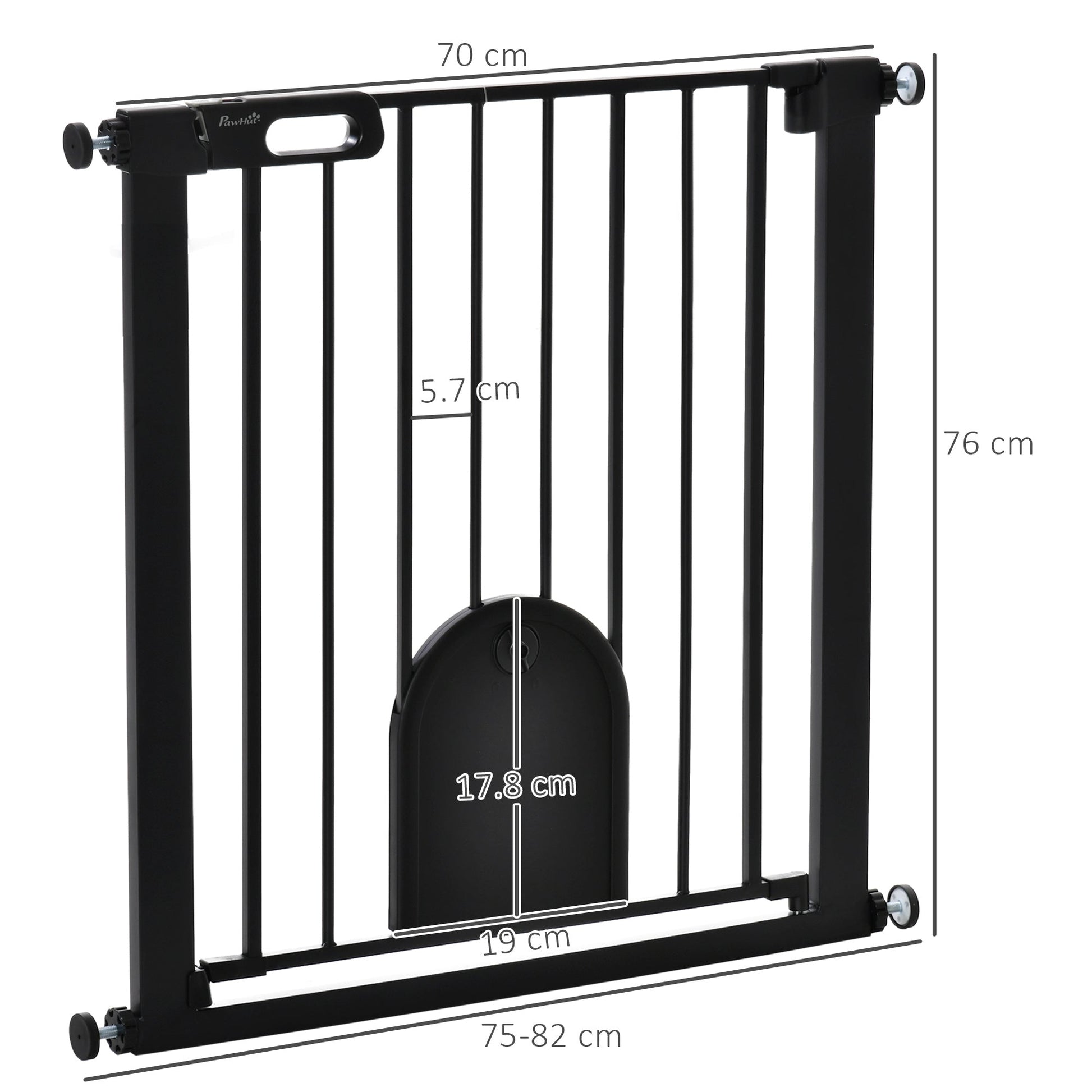 PawHut Dog Gate with Cat Flap Pet Safety Gate Barrier, Stair Pressure Fit, Auto Close, Double Locking, for Doorways, Hallways, 75-82 cm Black