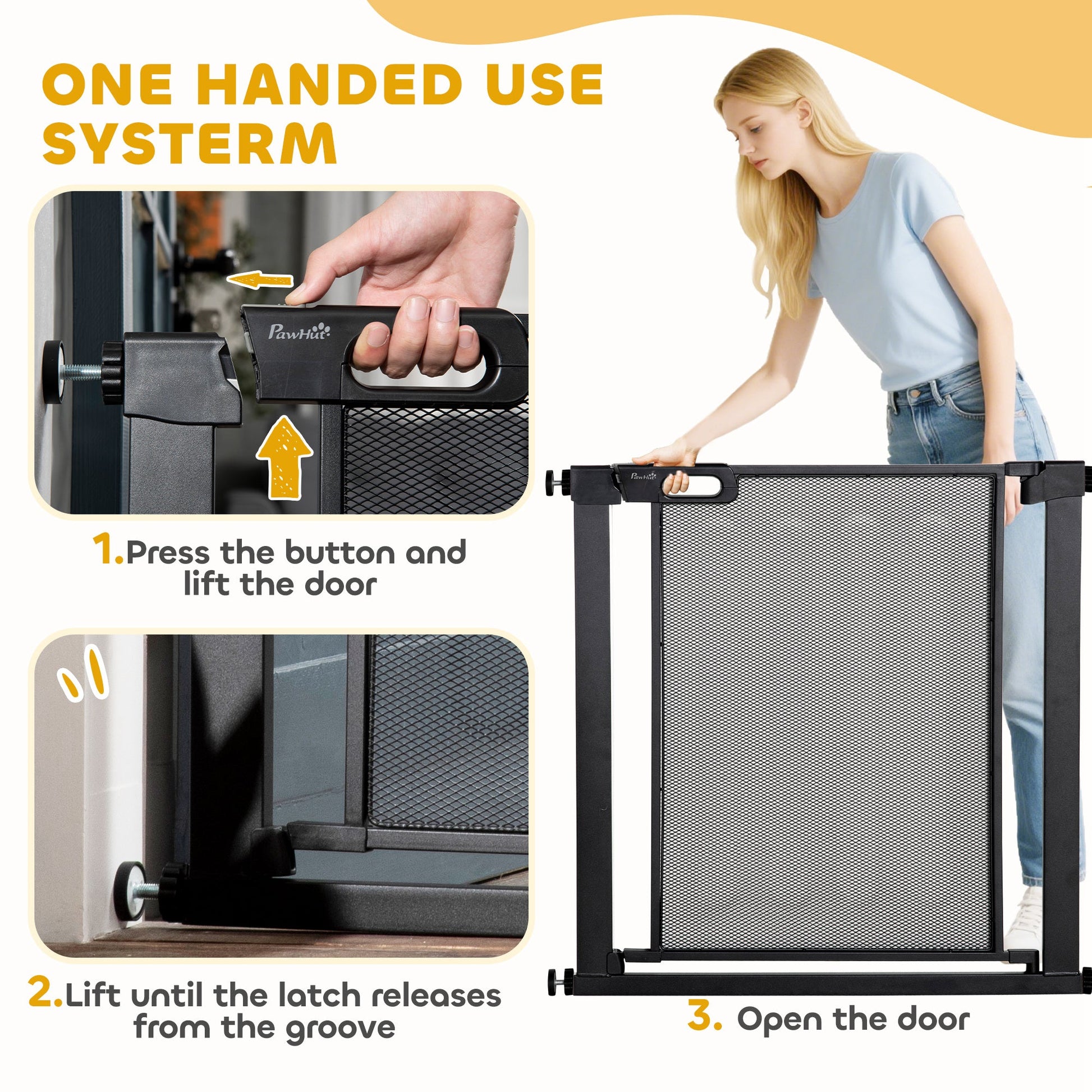 PawHut Dog Safety Gate, for Hallways, Staircases, Doors w/ Automatic Closing Door - Black