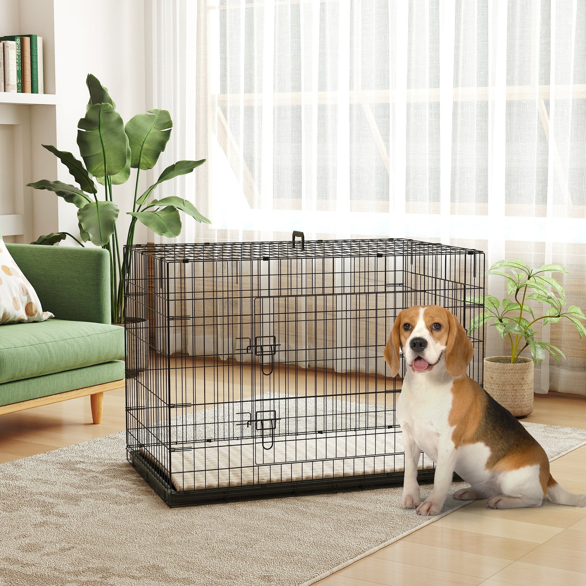 PawHut Foldable Dog Crate with 2 Doors with Tray, Soft Cushion, for Extra and Large Dogs, 105 x 70 x 75, Black