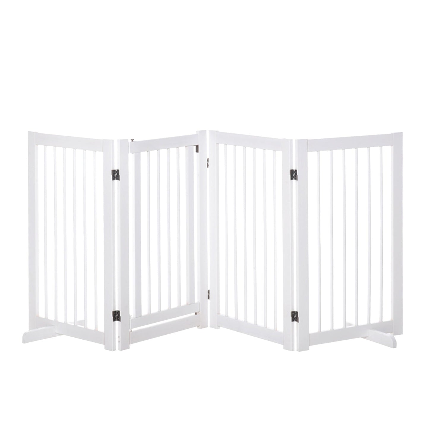 PawHut Freestanding Pet Gate 4 Panels Wooden Dog Safety Fence Foldable with Support Feet for Doorway Stairs 91cm Tall White