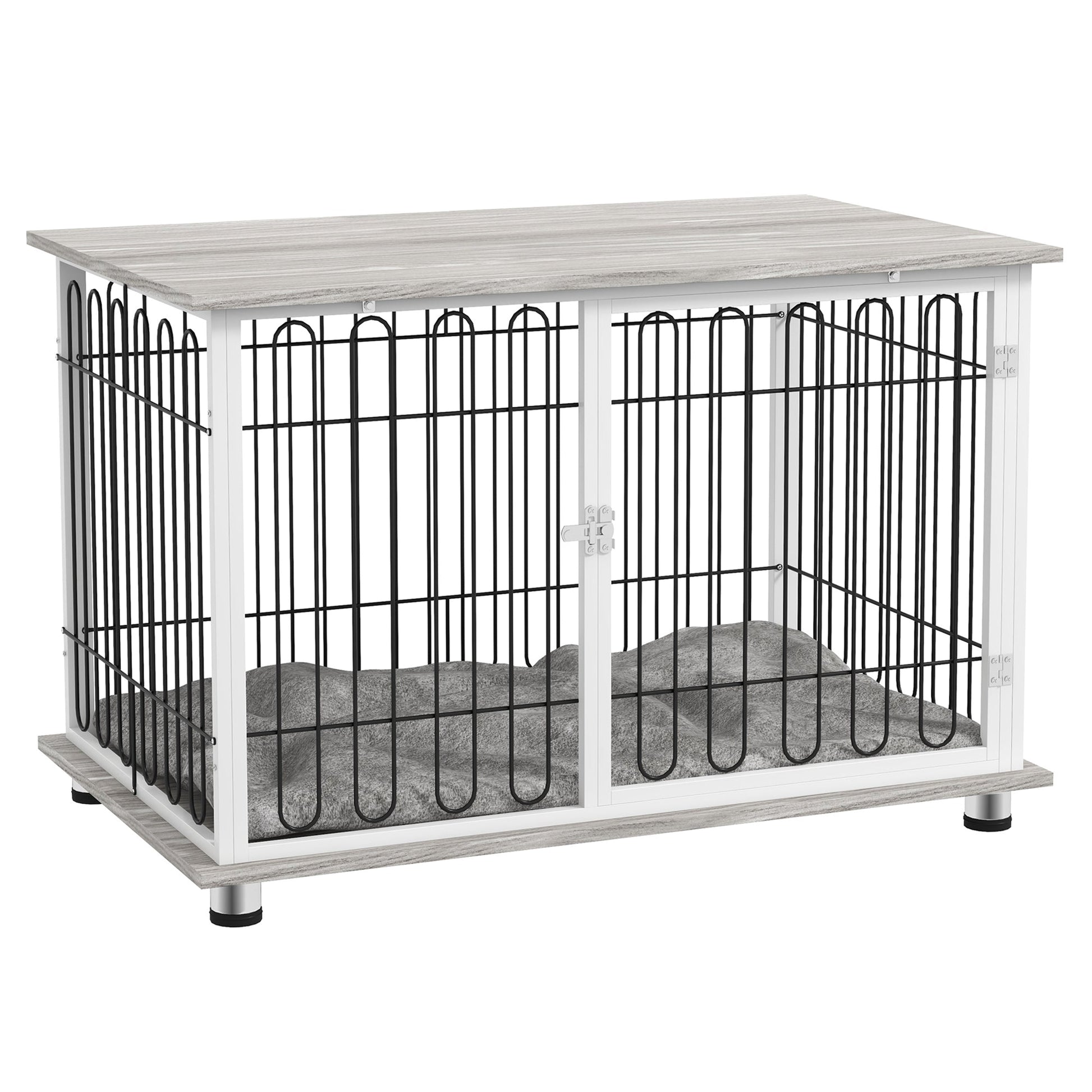 PawHut Indoor Dog Crate Furniture, Side End Table, with Soft Washable Cushion, Lockable Doors, for Large Dogs