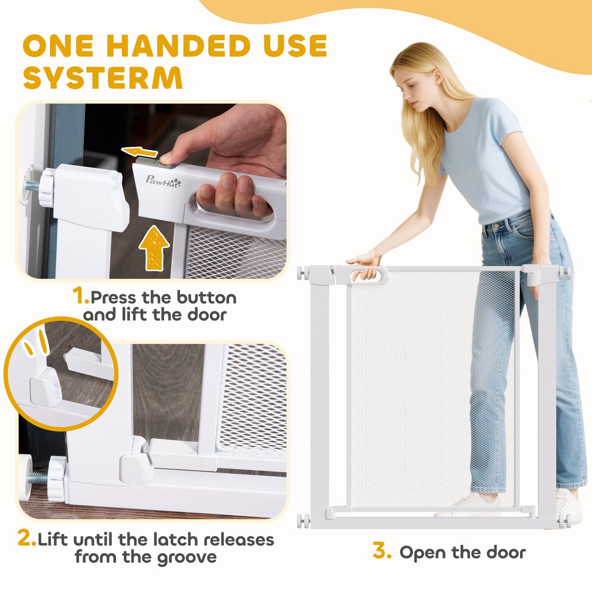 PawHut Pet Safety Gate, for Doorways, Staircases, Hallways, with 75-82cm Adjustable Width - White