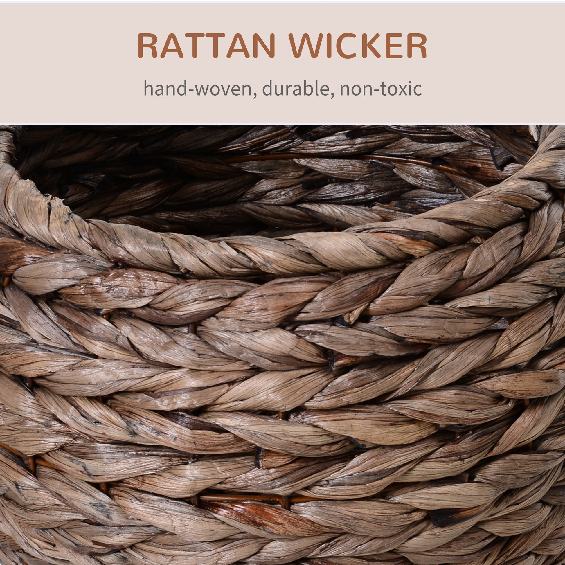 Make your pet feel at ease with this PawHut wicker cat house. They'll curl up on the soft cushion, which is washable to keep their space extra clean and cosy. Their bed is elevated from the ground, stopping dampness and cold seeping through, making sure they stay cool and comfortable. The Cylindrical base of this cat bed cave brings balance and stability, whilst the enclosed design will have pets feeling safe and secure. A compact piece for smaller spaces; pets will enjoy their new-found haven.
