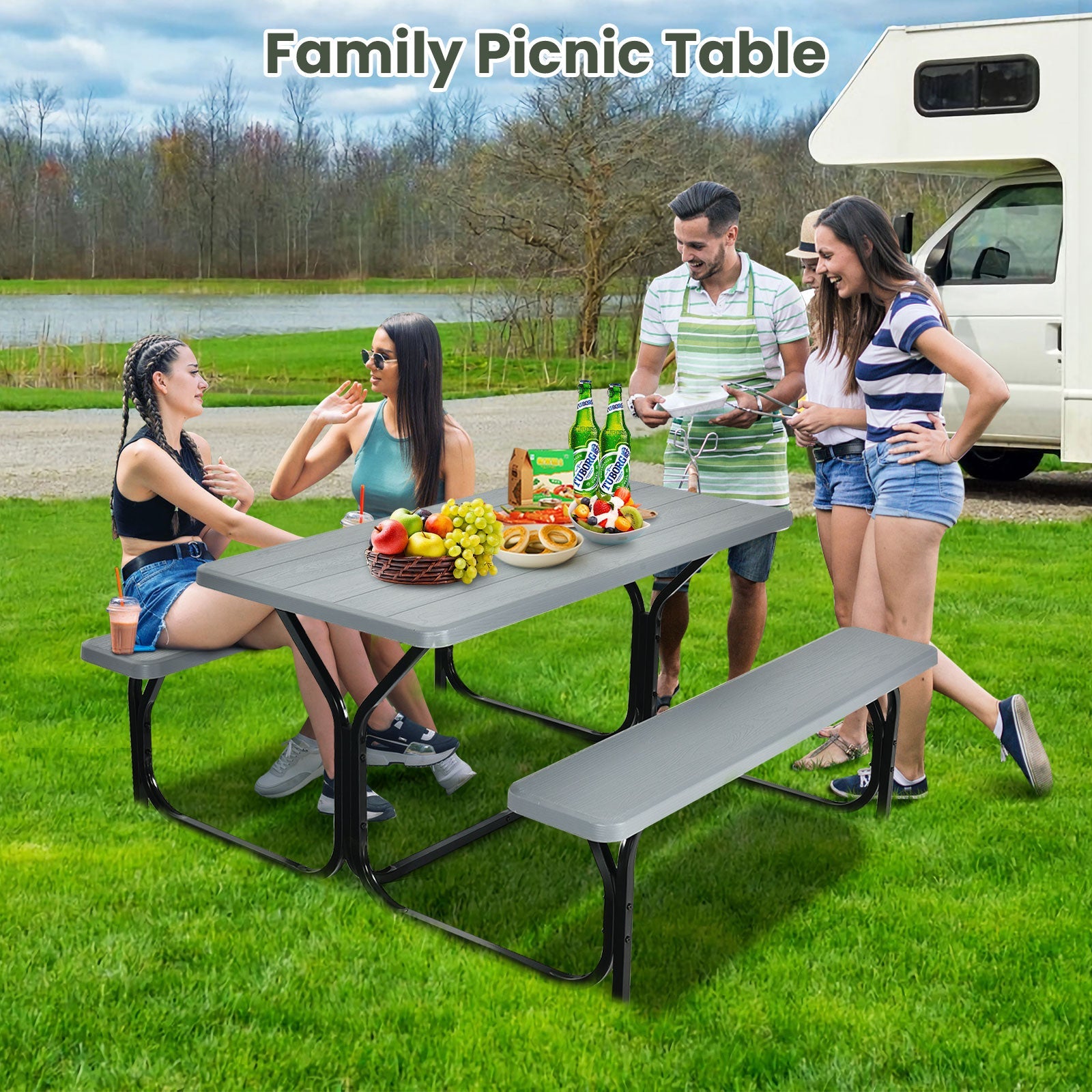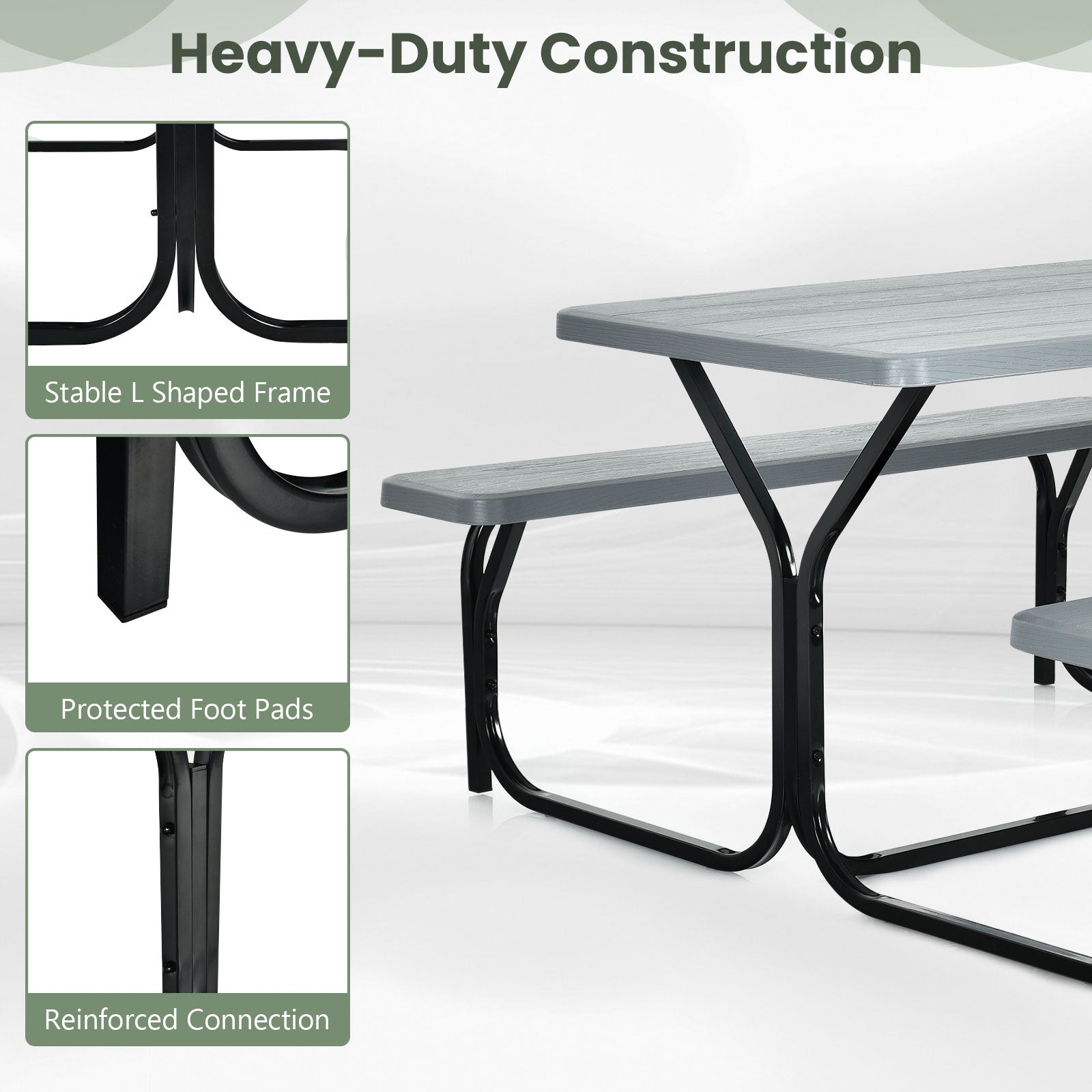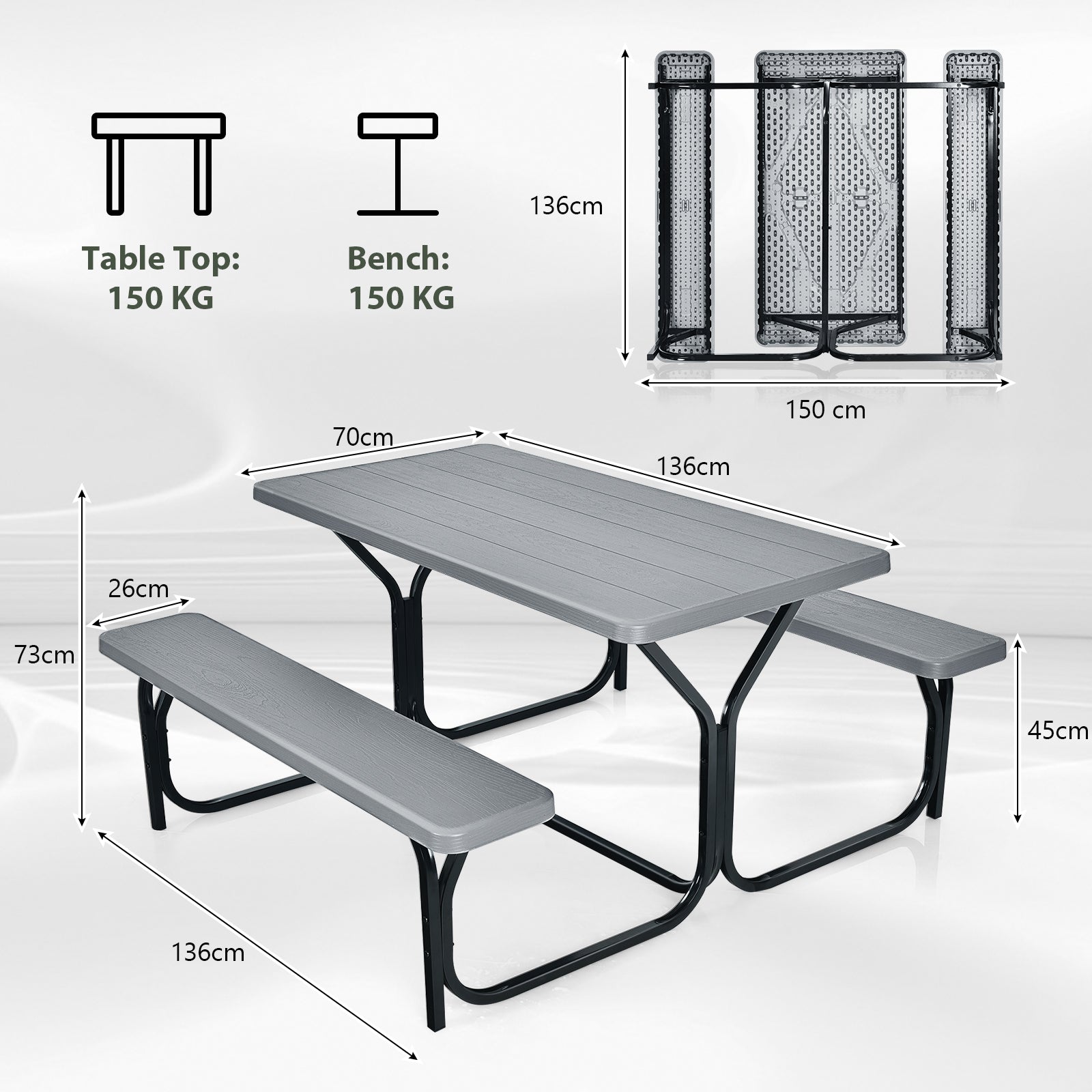 Picnic Table Bench Set with Metal Base Wood for Outdoor-Grey