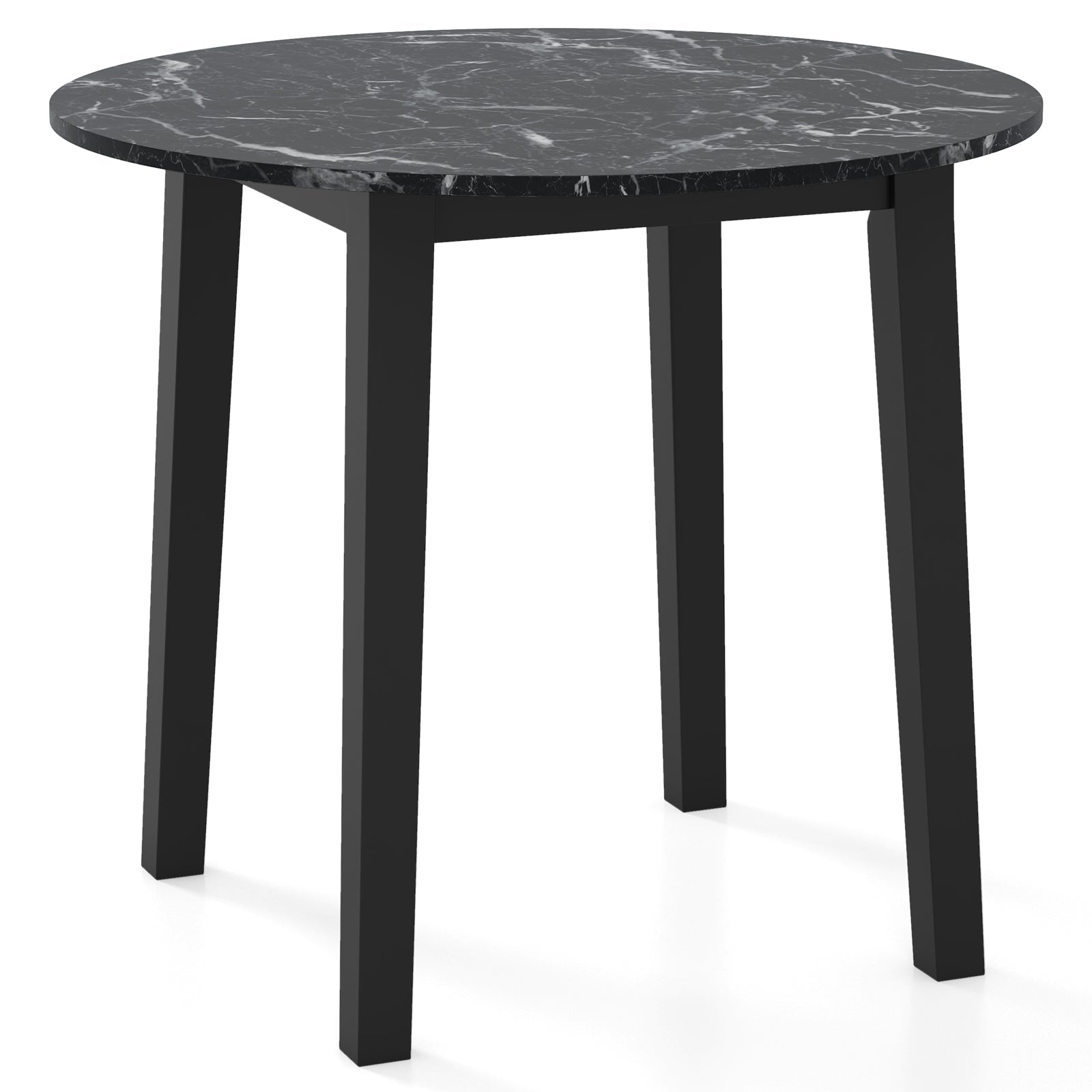 Round Dining Table with Rubber Wood Legs and Marble-textured Veneer Tabletop-Black
