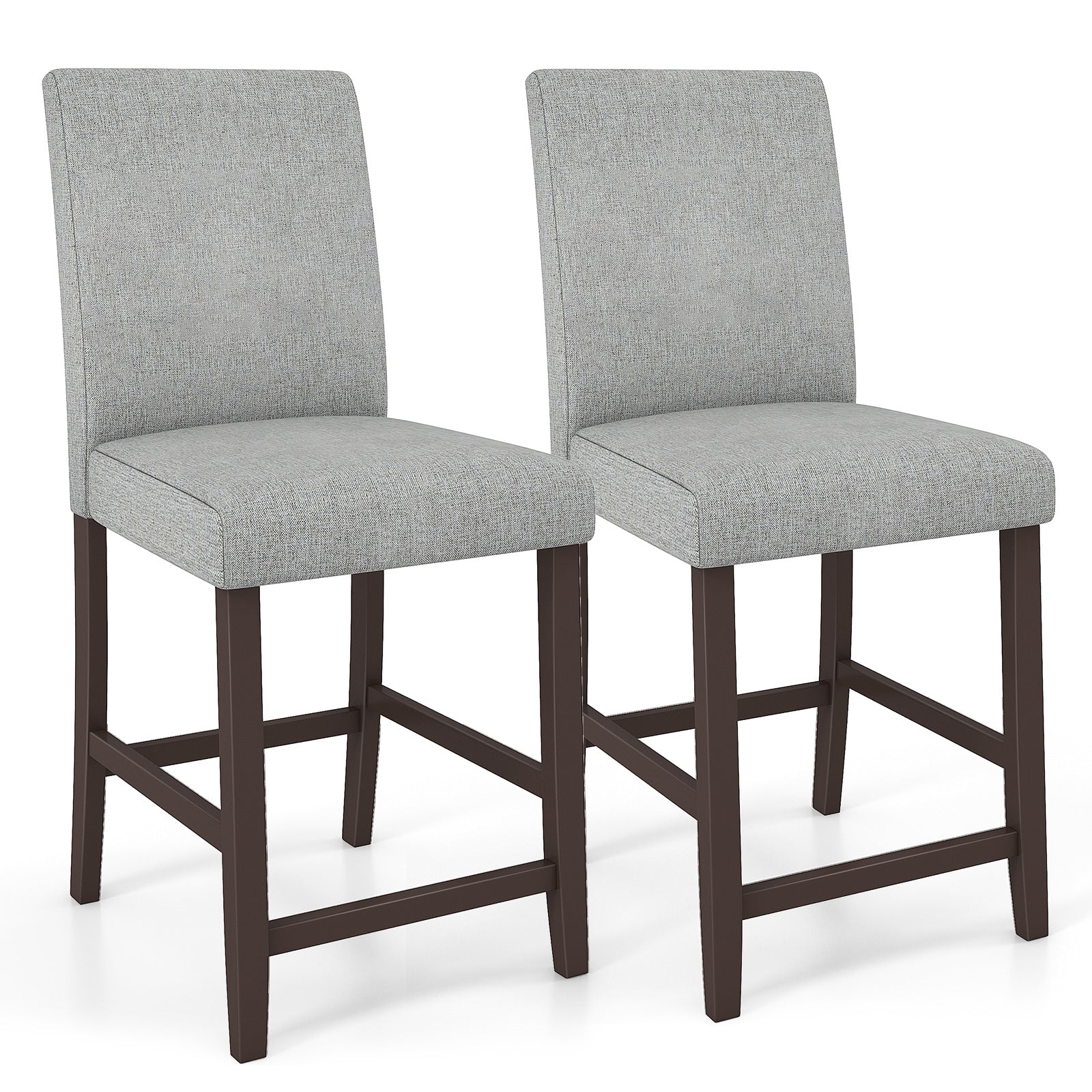 Set of 2 Counter Height Bar Stools with Rubber Wood Legs and Ergonomic Back