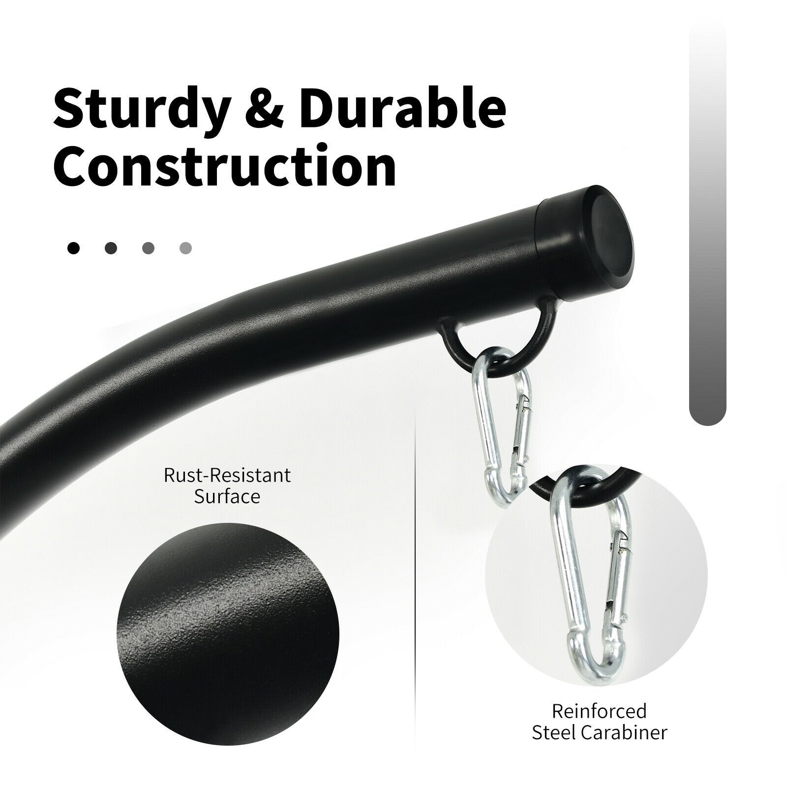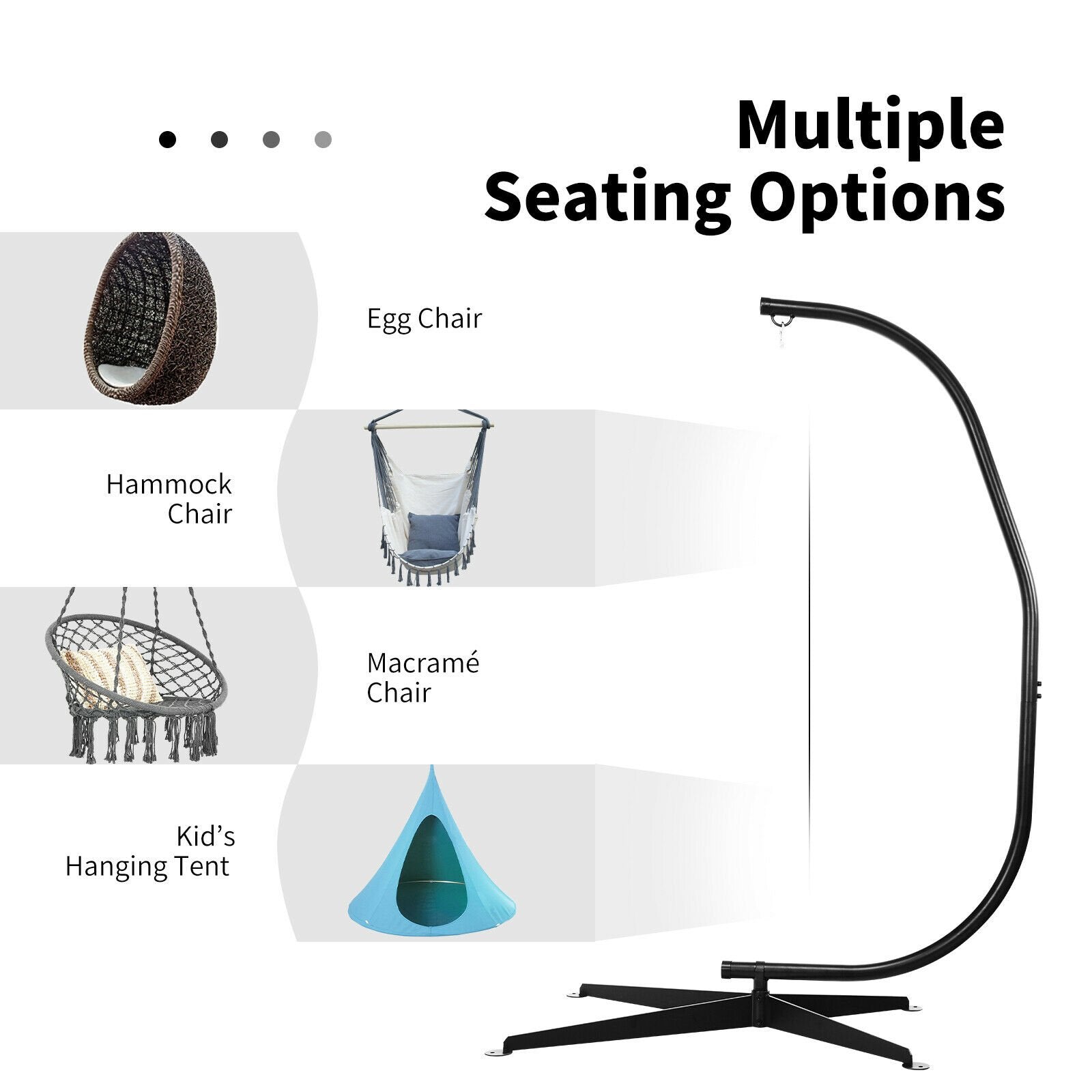Made of durable and high-quality material, this hammock stand can be used for a long time. C-shaped hammock chair stand is a wonderful choice for you! Hammock stand with large size allows you to freely enjoy large sitting space. Cross base and solid frame enable the stand to be sturdy and stable, you can use it wherever you like. Additionally, we provide you with all accessories and instruction to help you assemble it with convenience. If you are looking for a sturdy chair stand like this, don't hesitate to place an order! Cross baseenables it to be stable and safe Ideal for both indoors and outdoors use C-shape designand large size to provide you more space Easy to assemble and detach, saving users' time and energy Wonderful decoration for users to put in bedroom and livingroom Heavy-duty steels to perfectly hold chairs and users weighting 150 kg powder-coated steel allows our chair stand to be durable and weather-resistant