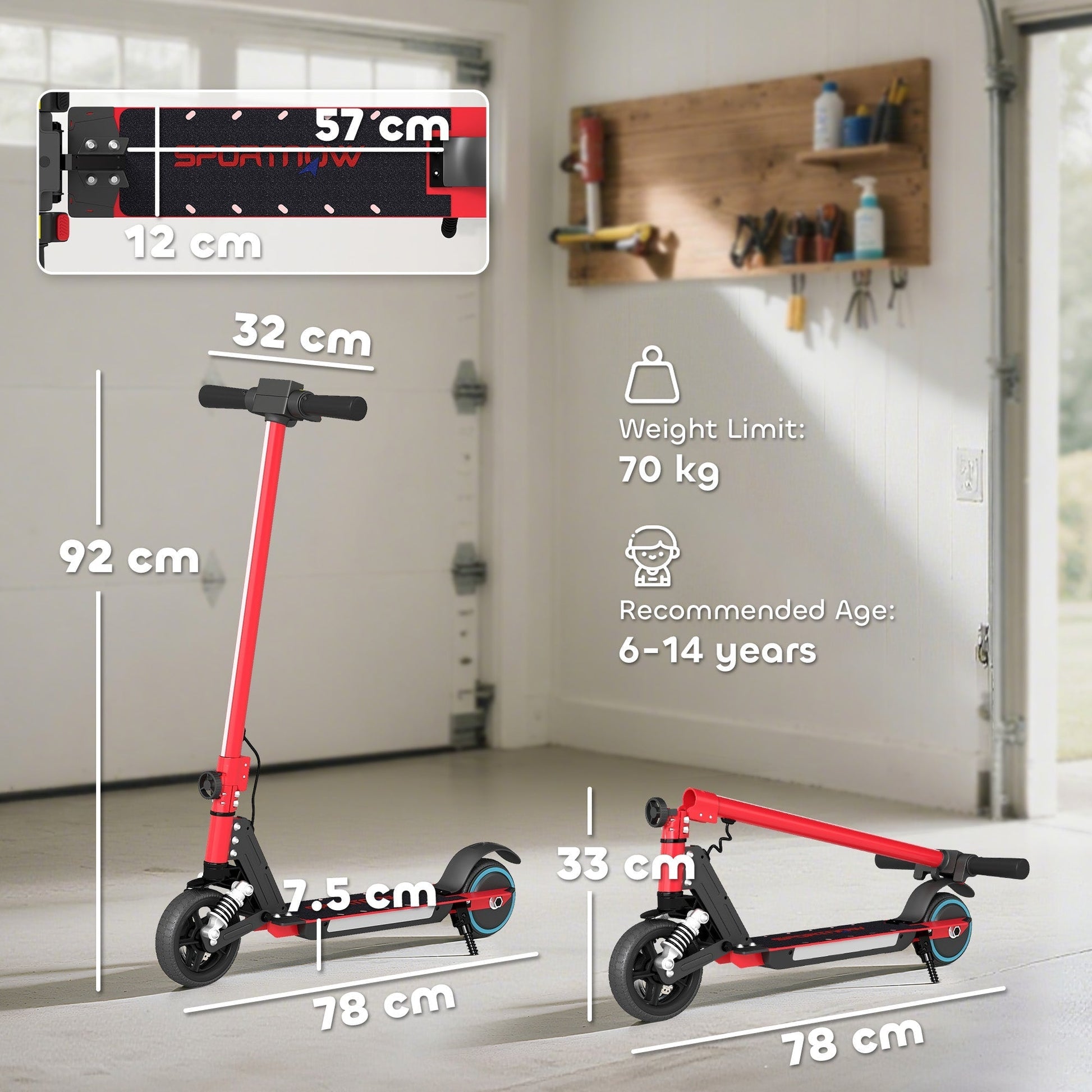 Scootering just got cooler with the SPORTNOW e-scooter! Great for ages 6–14 years, it reaches up to 14km/h and covers 6km on a three-hour charge. The soft start feature prevents sudden jolts, while dual brakes offer safe stops. Lightweight and foldable with an aluminium frame, it's easy to carry and store. An LED display shows speed and battery level, while the vibrant bottom light bar adds fun and visibility. Ready to ride?