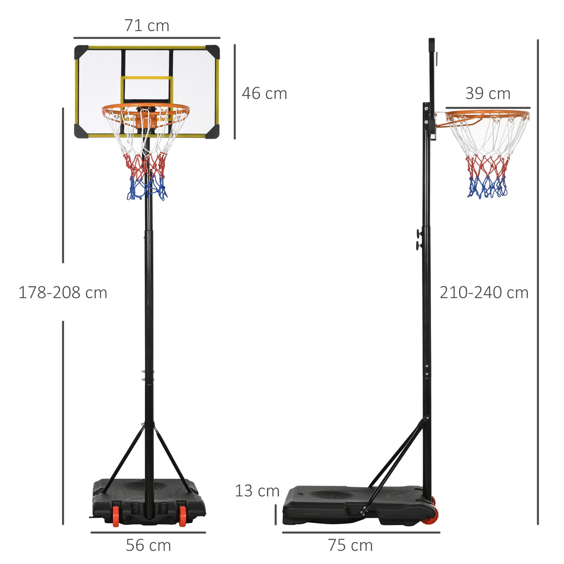 SPORTNOW Height Adjustable Basketball Hoop and Stand with Firm Backboard and Weighted Base, Portable Wheels, Yellow