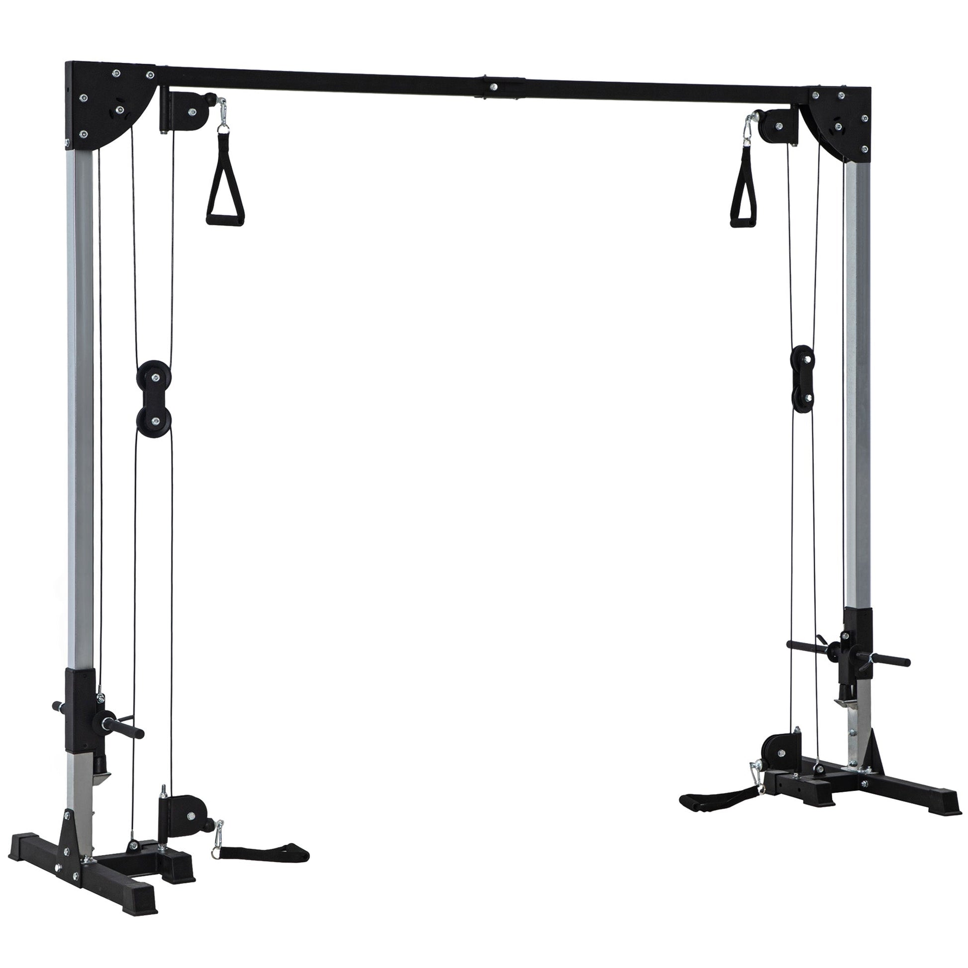 Discover the SPORTNOW Cable Crossover Machine - your all-in-one solution for versatile strength training. Designed with four adjustable handles, it supports a wide range of exercises including pull-ups, push-ups and more - great for solo sessions or partner workouts. Each side accommodates up to 50 kg with 2.5 cm weight plates, while the heavy-duty steel frame ensures lasting stability and support for your fitness routine.