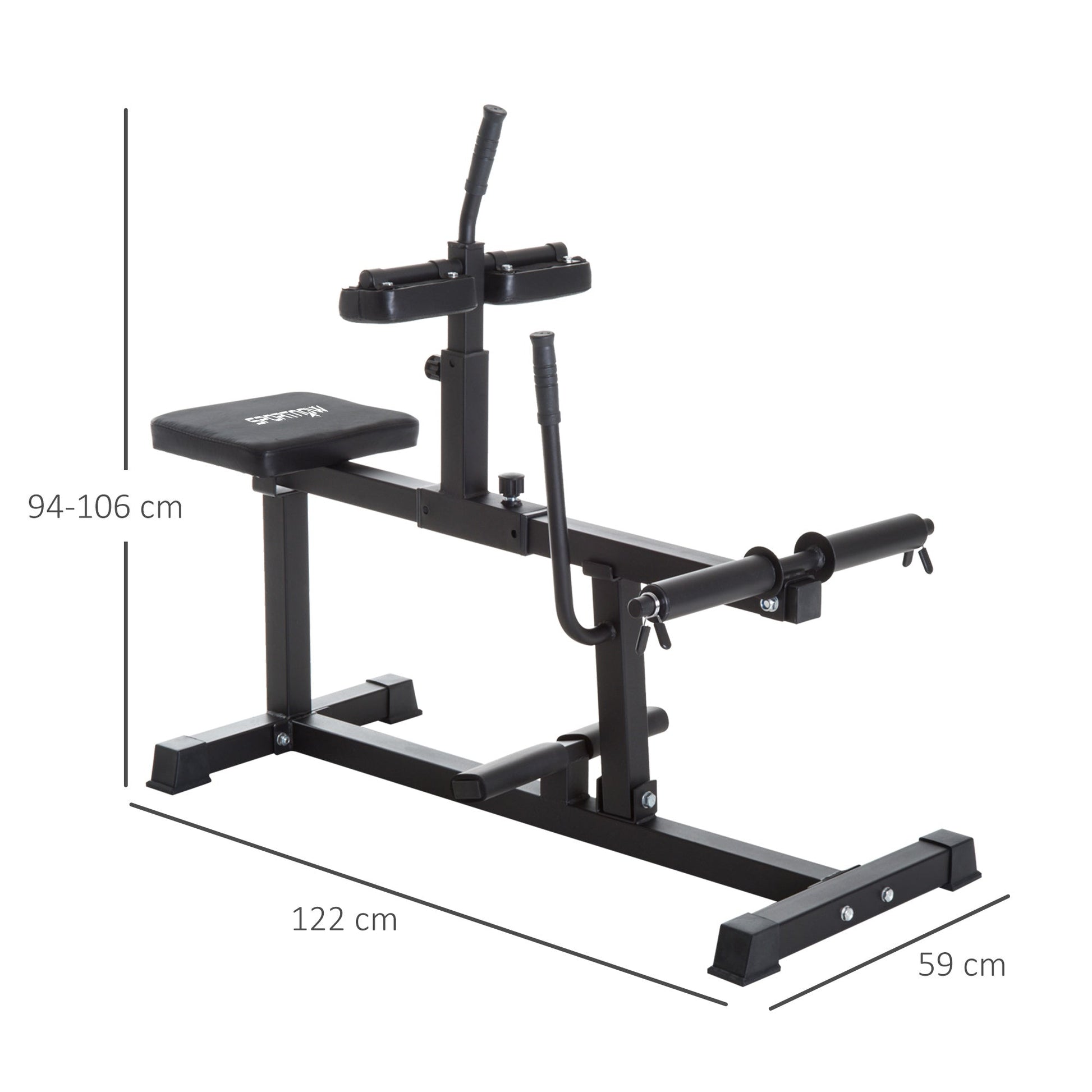 Build strong, powerful calves with this leg stretcher from SPORTNOW. It features high grade steel construction, bolted on anti-slip feet, with a scratch resistant, powder coated finish. This leg curl extension machine is designed with adjustable thigh pads and dual Olympic weight posts for added function and comfort. Start training your calves today with this superior leg curl machine!