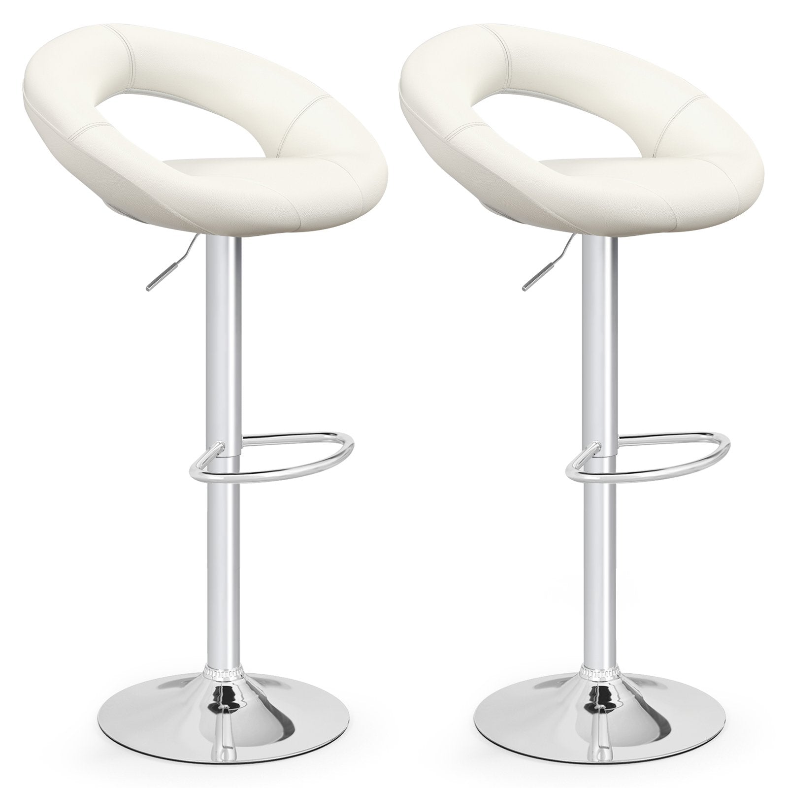 Swivel Height Adjustable Bar Stool Set of 2 with Hollow Back and Footrest-White