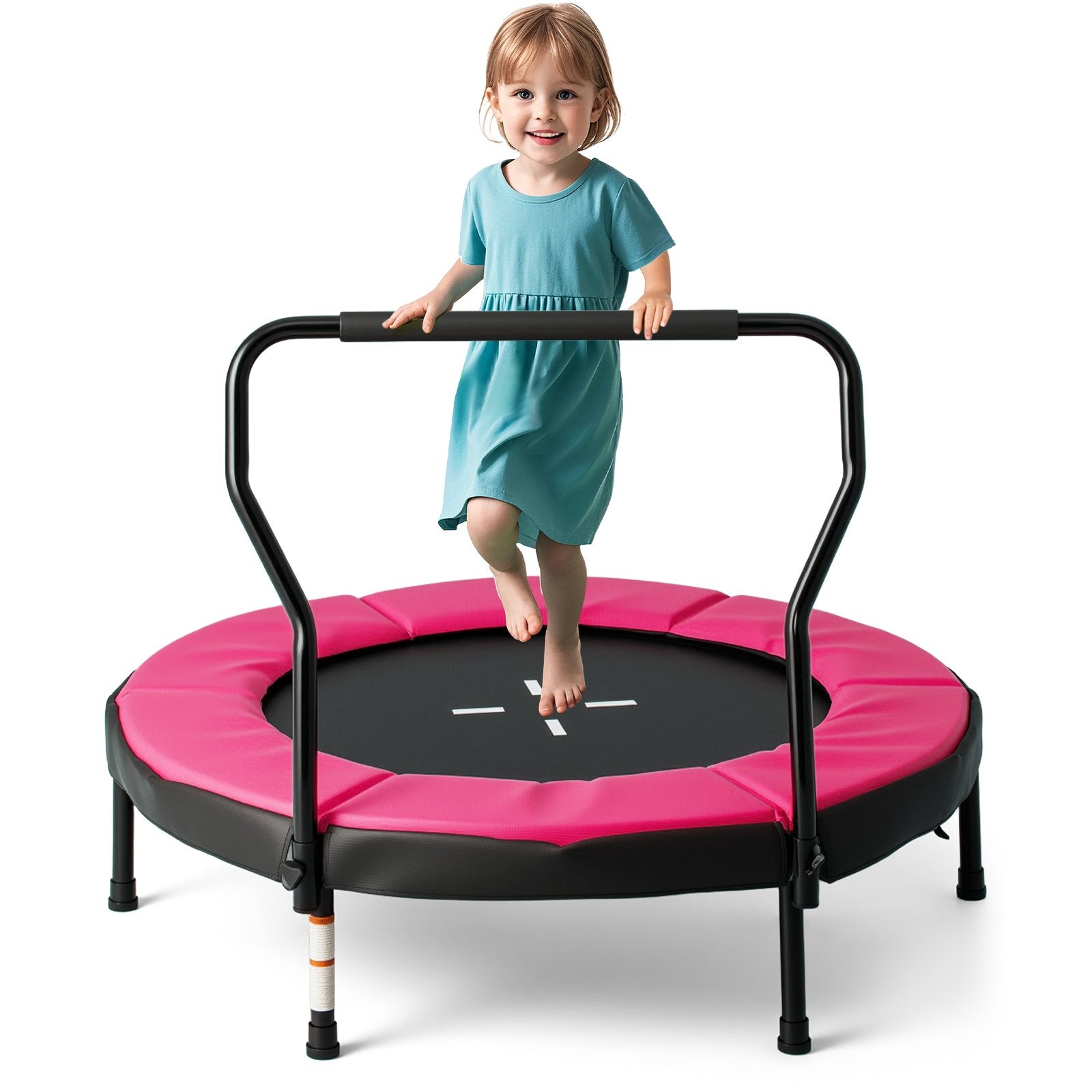 Trampoline for Kids Indoor Outdoor Fitness Trampoline with Handlebar-Pink