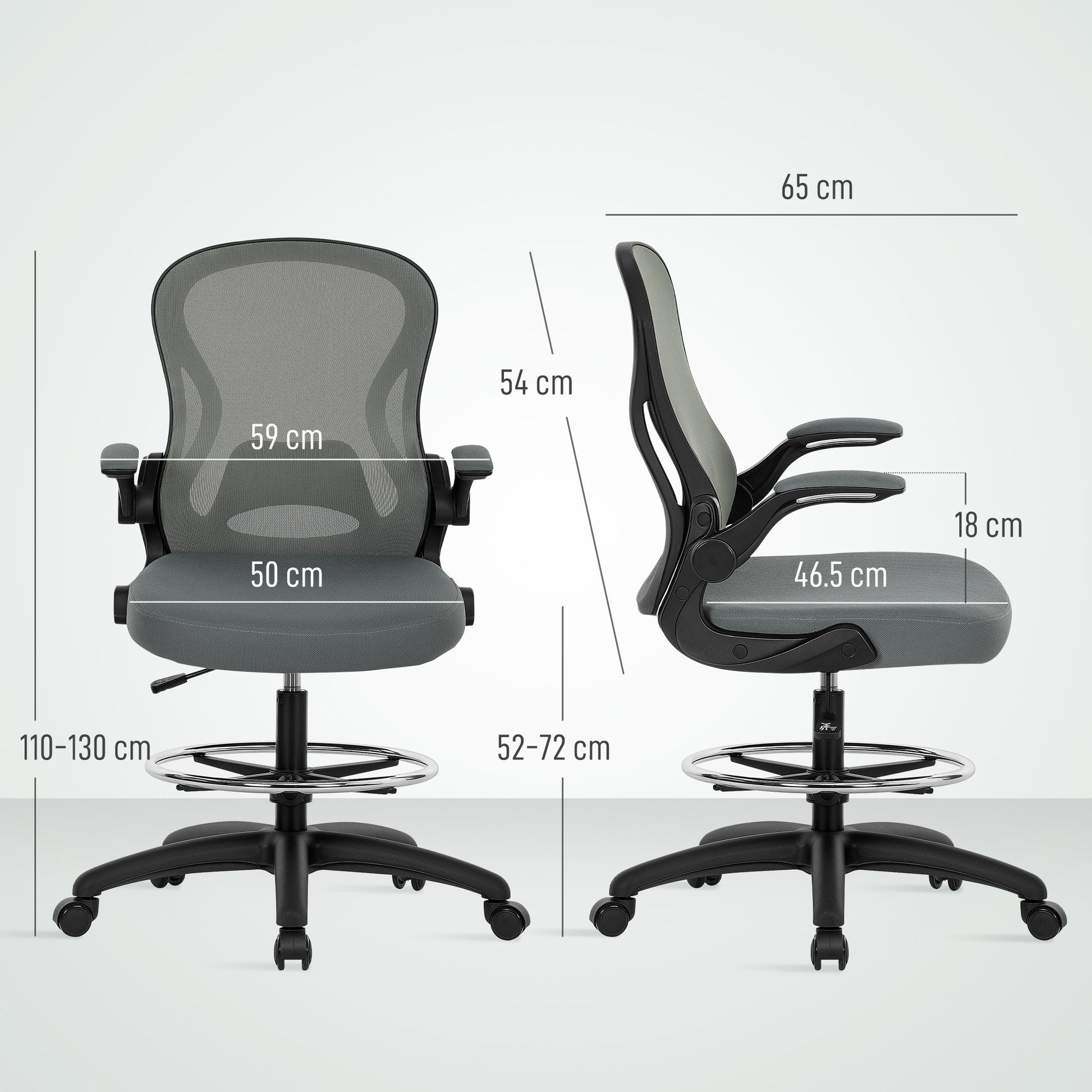 Vinsetto Drafting Chair, Ergonomic Tall Office Chair with Flip-up Armrests, Mesh Back, Lumbar Support, Adjustable Height and Foot Ring, Swivel Wheels, for Standing Desk, Charcoal Grey