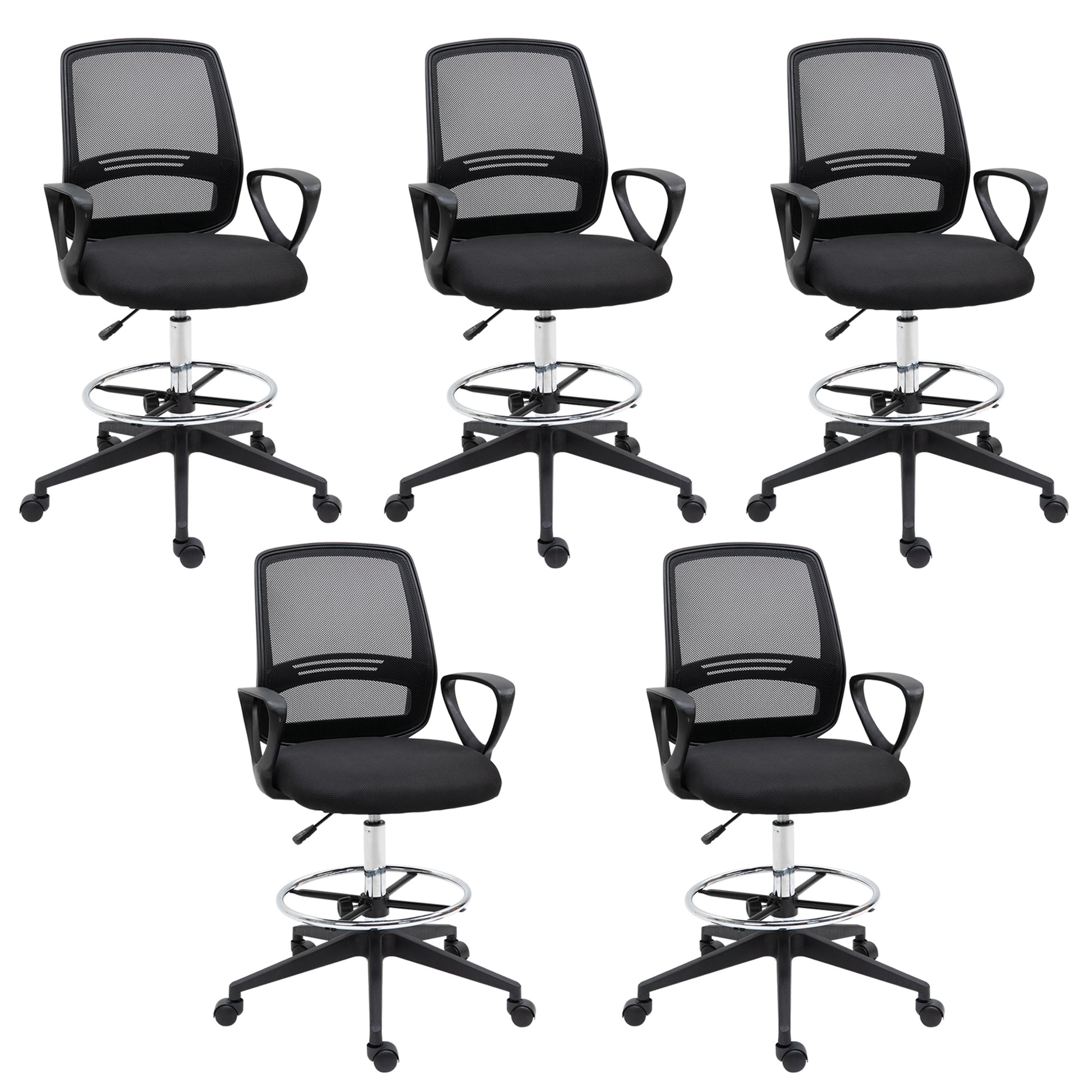 Vinsetto Ergonomic Mesh Back Drafting Chair, Tall Office Chair, Draughtsman Chair with Adjustable Height and Footrest 360° Swivel, Set of 5
