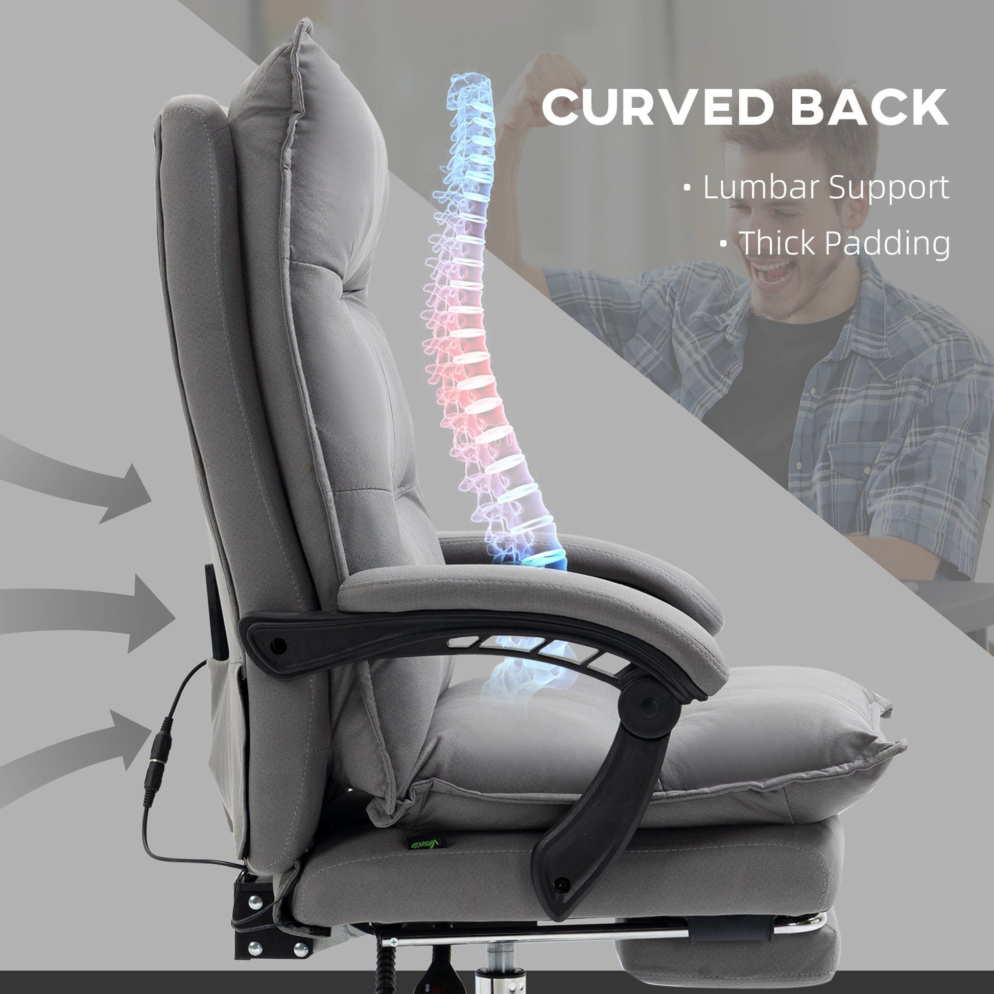 Vinsetto Massage Office Chair with Footrest, Desk Chair with 6 Point Massage and Heat, 155 Reclining Back for Home, Thick Padding, Grey