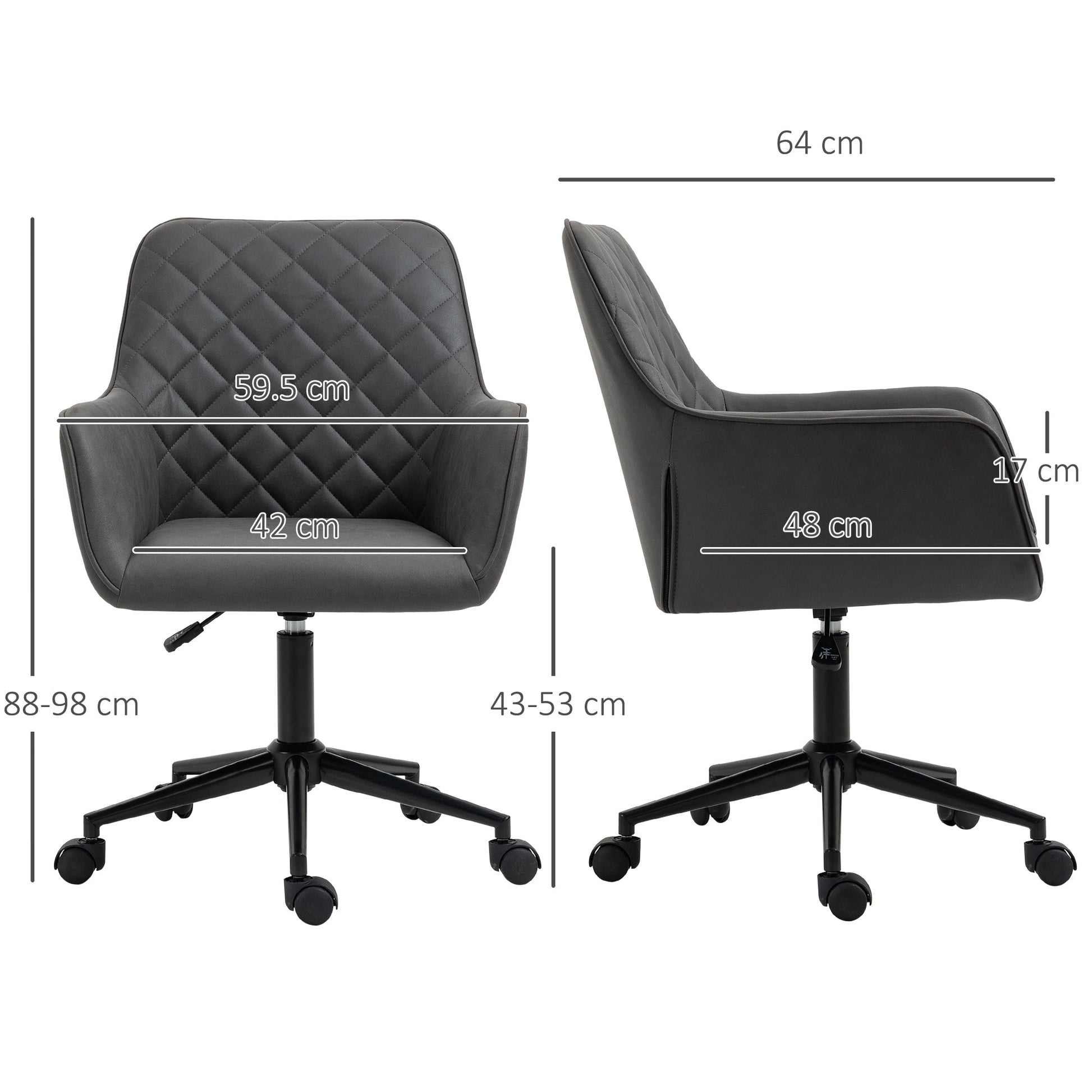 Vinsetto Office Desk Chair, Leather-Feel Fabric Computer Swivel Chair with Rolling Wheels and Adjustable Height for Home, Grey