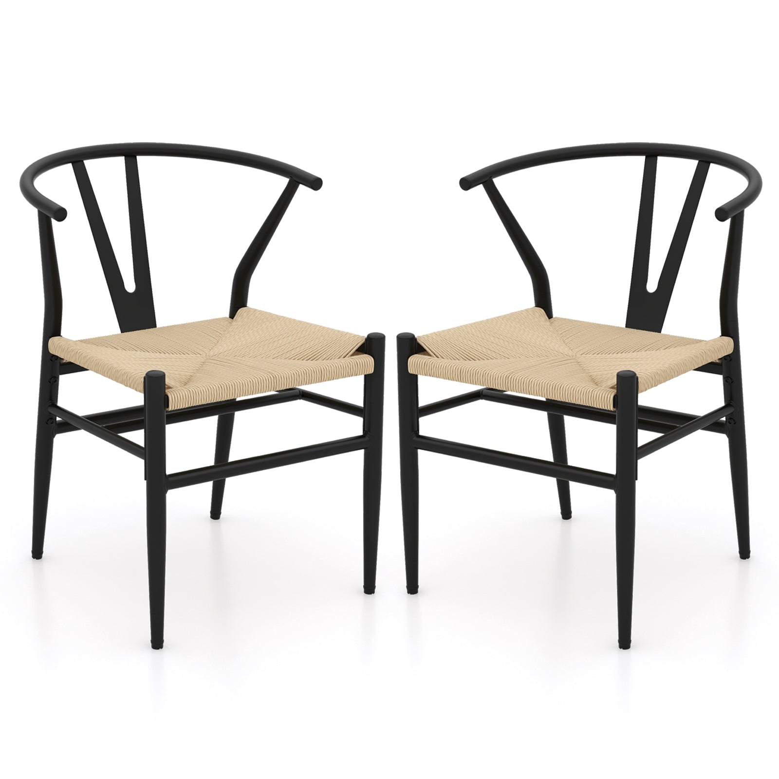 Wishbone Dining Chair Set of 2 with Y-Shaped Backrest and Woven Twine Seat-Beige