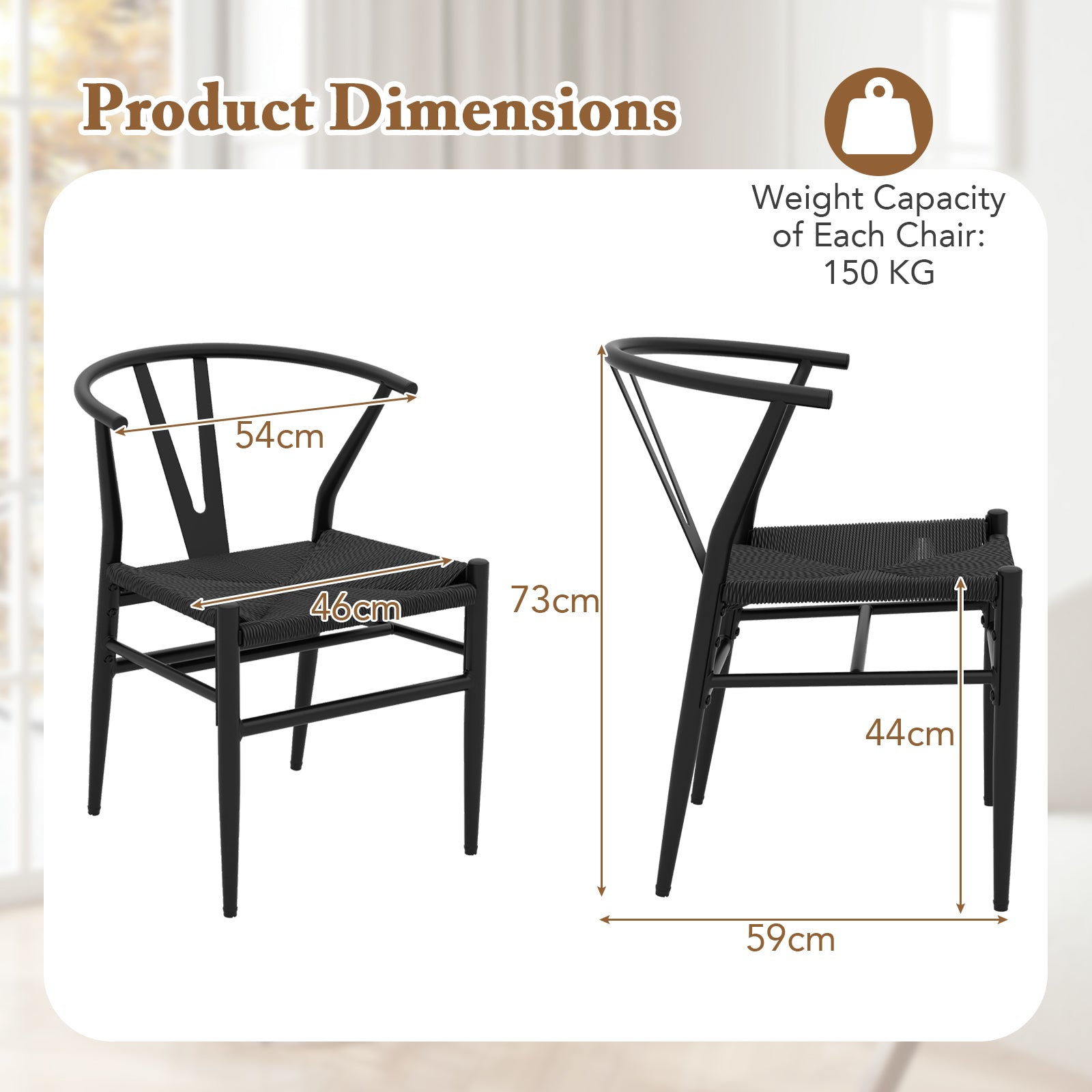 Wishbone Dining Chair Set of 2 with Y-Shaped Backrest and Woven Twine Seat-Black