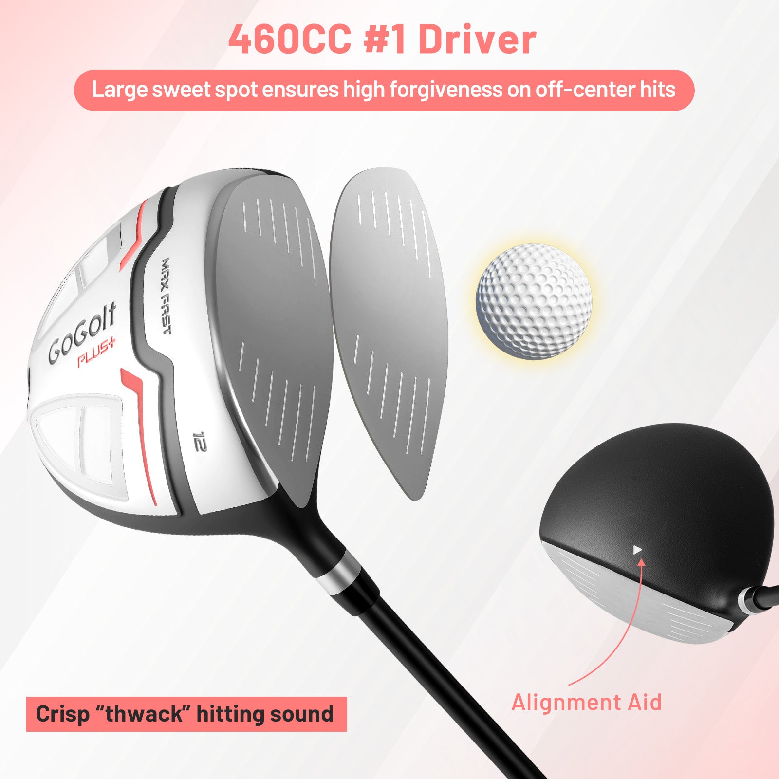 You will experience high-performance woods and irons with graphite shafts for optimal play. The irons' low center of gravity and cavity back design enhance stability and forgiveness, while the putter aids in precise putting. The lightweight and portable golf bag features ample storage, ensuring comfort and organization on the course. What are Included: This women's complete golf set features a #1 driver, a #3 fairway wood, a #5 hybrid, a full set of irons (#5 #6 #7 #8 #9 #P #S), a putter, and 3 headcovers, all neatly organized in a stylish golf stand bag equipped with a rain hood. High-Performance Woods: The wood clubs in this set include aluminum alloy clubheads and lightweight graphite shafts for optimal performance. The included 460cc #1 driver boasts a large sweet spot for greater forgiveness and added confidence in your drive. Exceptionally Crafted Irons: All irons in this set feature a low center of gravity and cavity back designs, which enhances the stability of the swing and improves forgiveness. Plus, the anti-skid surface increases the spin and control of the ball. Putter with Alignment Aid: The mallet putter helps improve your putting skill. This putter is designed for precision, featuring alignment lines for better aim, a sturdy steel shaft for durability, and anti-slip TPR handgrips for a more stable, consistent putt. Ergonomically Designed Golf Bag: With adjustable dual shoulder straps and multiple handles, this golf stand bag allows you to carry your clubs in comfort. It features large storage capacity including 5 zippered pockets and a 7-way top divider, ensuring a smooth and organized game.