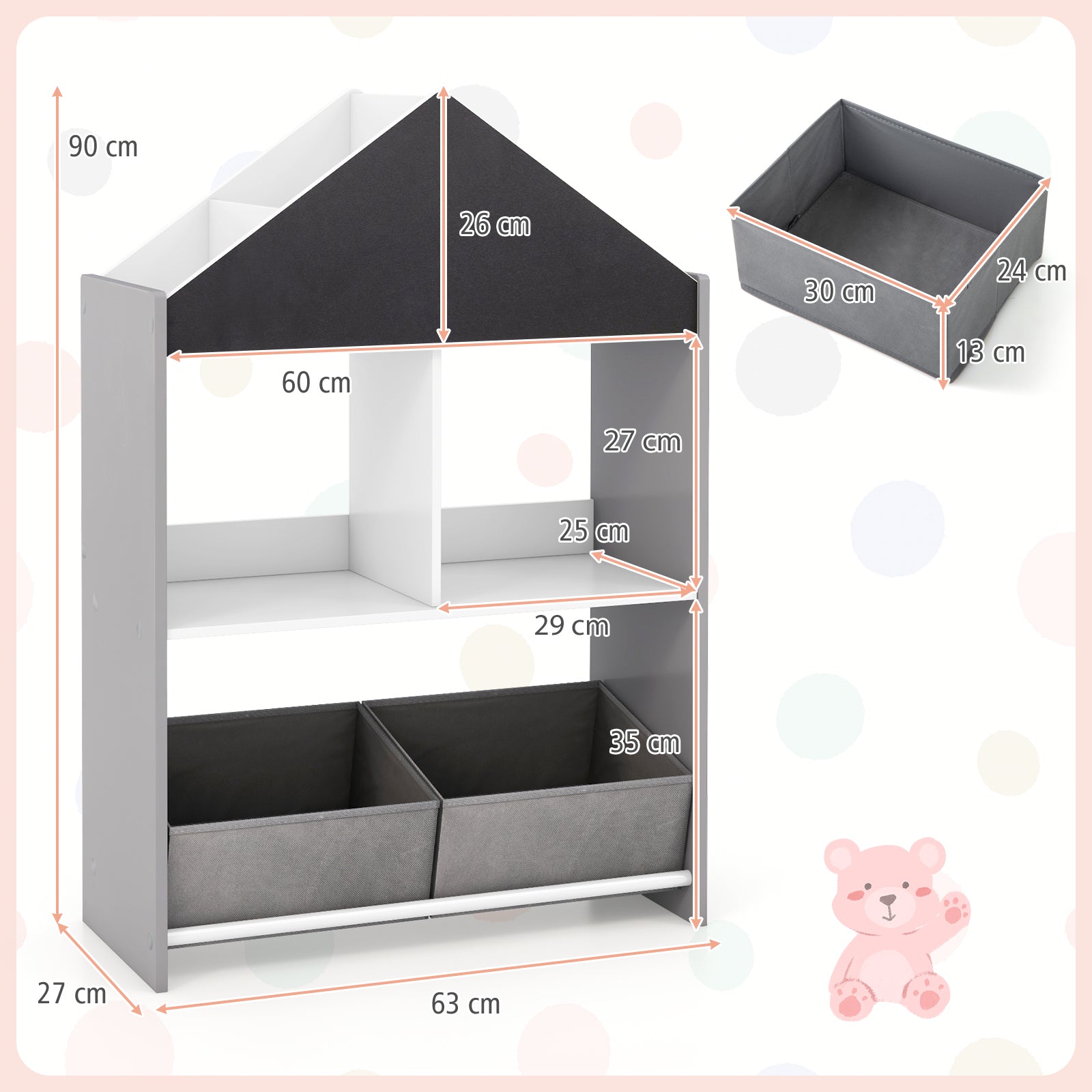 Wooden Kids Dollhouse Bookshelf Toy Storage Organizer with Chalkboard-Grey