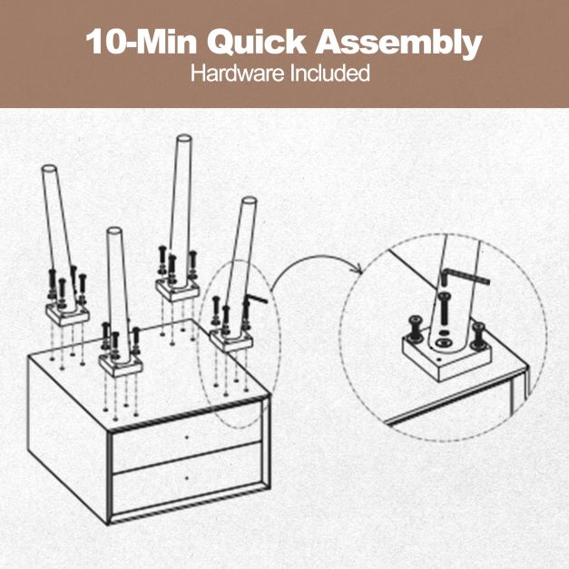 This versatile and stylish piece perfectly complements any decoration whether you're into modern, farmhouse, or vintage vibes. With 2 spacious drawers and a roomy top, you’ll have plenty of space for your bedside essentials like lamps, photos, cups, phones, and personal items. Crafted with solid rubber wood legs, this nightstand provides unmatched durability and support. Enhanced stability and safety are guaranteed with the anti-tipping device. It is perfect for any room, and an absolute must-have if you want to give your bedroom a make-over! Ample Storage Space: Equipped with 2 drawers, thebedside table allows you to arrange your household items and keep them neat and organized. Through the handles, the drawers can be easily pulled in or out. Besides, the spacious table top is ideal for you to display photo frame or personalized decoration. Tilting Prevention Device: Thewooden nightstand is equipped with tilting prevention device, which can tightly fasten the table to the wall. You no longer have to worry about the danger of accidental falls. And thanks to the high standard edge connecting procedure, this end table becomes more durable and solid. A Combination of Fashion and Function: Designed with the mid-century modern style, this 2-drawer side table will add a sense of chic aesthetics to your home. This small nightstand is perfect for you to put lamps, books or plants and is suitable for various places such as living room, bedroom or sofa side. Stable and Durable Structure: Made of rubber wood and MDF material, this bedside cabinet is solid and durable enough to support a long service life. 4 splayed round legs are made from solid wood, which support the whole structure stably. And the sleek and sturdy surface enhances the durability. Easy to Assemble: Coming with all the necessary accessories and hardware, this sofa side table is easy and quick to assemble. Every screw and pin has its own code and it's easy to understand the assemble progress. You can start and complete in a short time by following the instruction step by step.