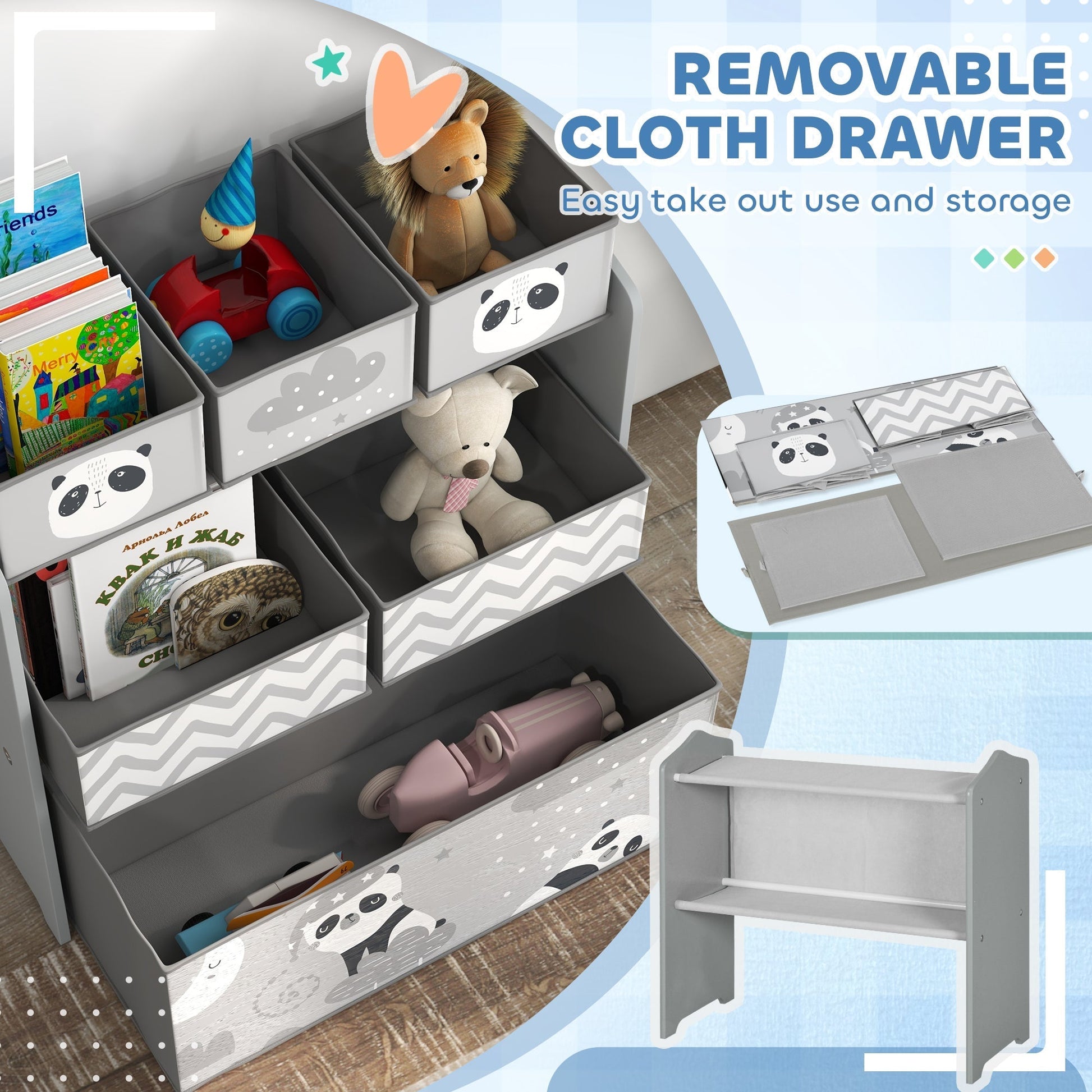 - Includes six boxes, providing lots of room to keep toys, books and more